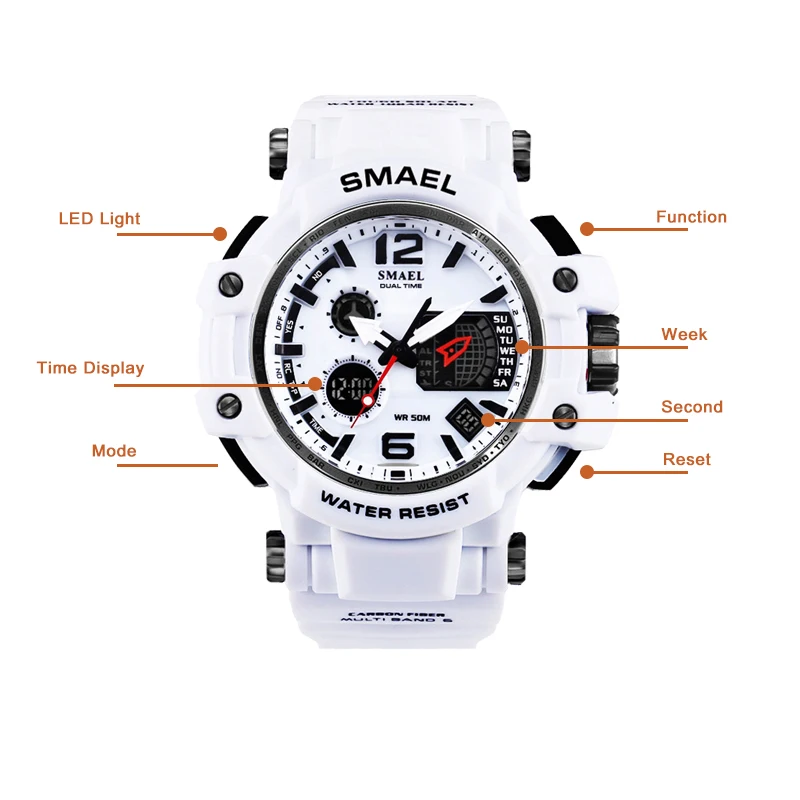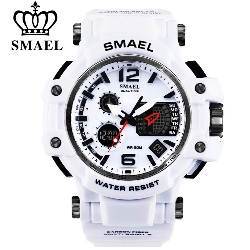SMAEL мужские часы белые спортивные часы светодиодный цифровой 50 м...