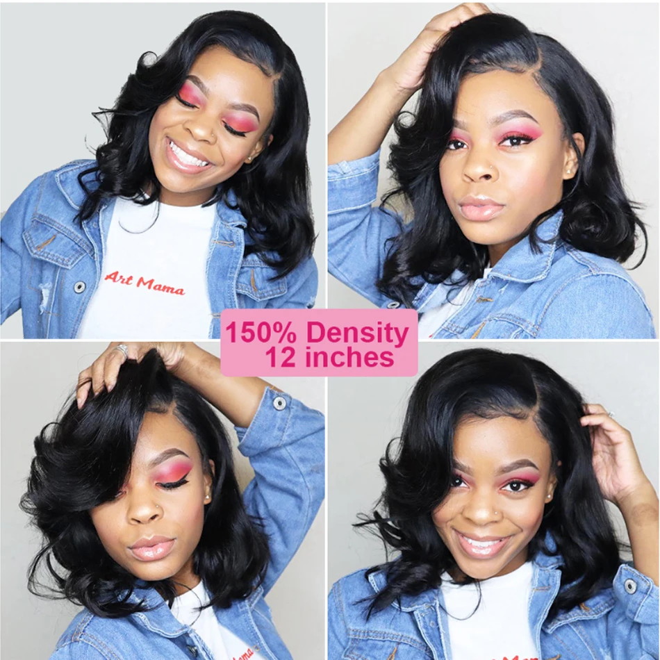 Парик для коротких волос, бразильский парик из натуральных волос с завязкой на сетке, 4 х4