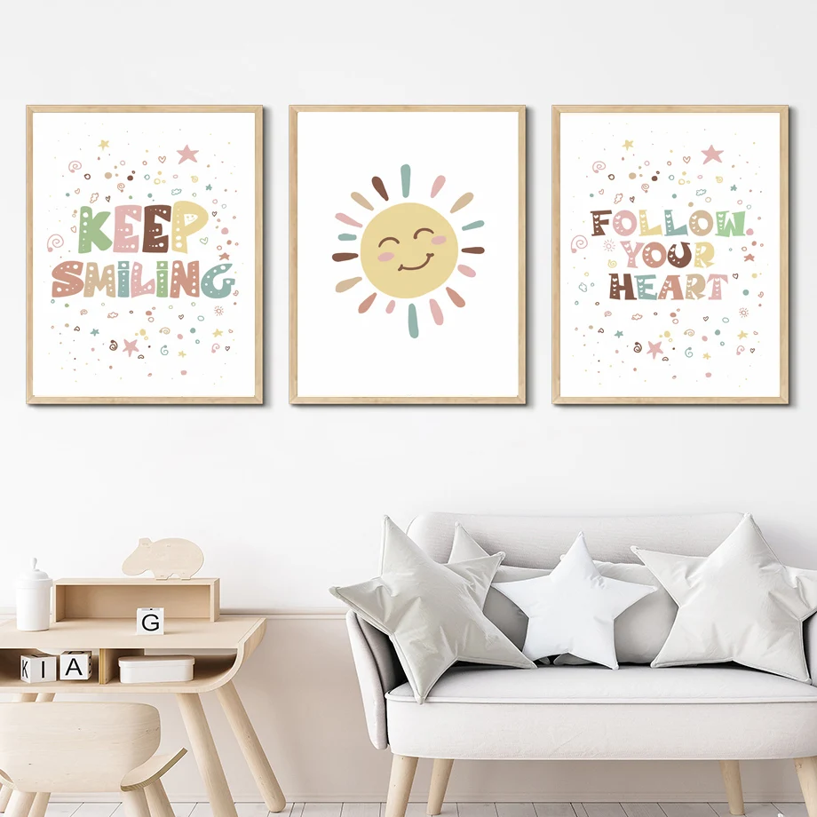 Солнце Луна Радуга облако звезда детская настенная живопись на холсте скандинавские Мультяшные плакаты и принты настенные картины для детской комнаты декорМатериал: экологически чистый хлопокХарактеристика: солнцезащитный, водонепроницаемый, никогда не выцветает