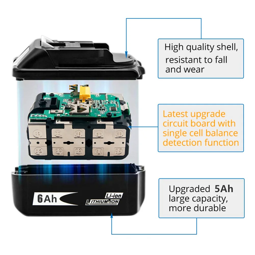 18В перезаряжаемая батарея 18В 6000 мАч литий-ионная для Makita 18В...