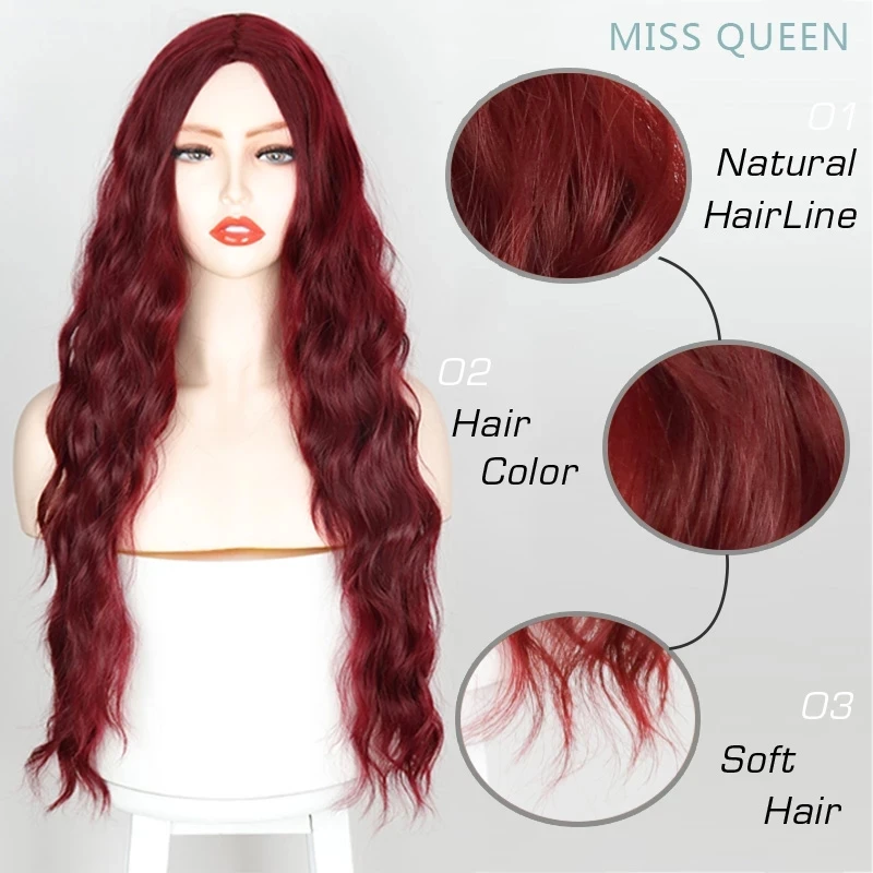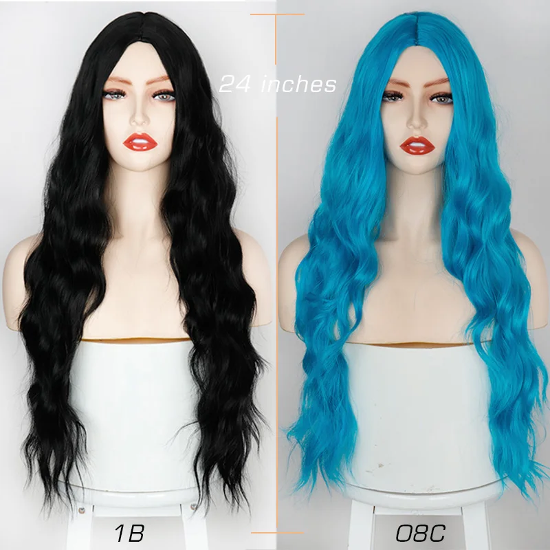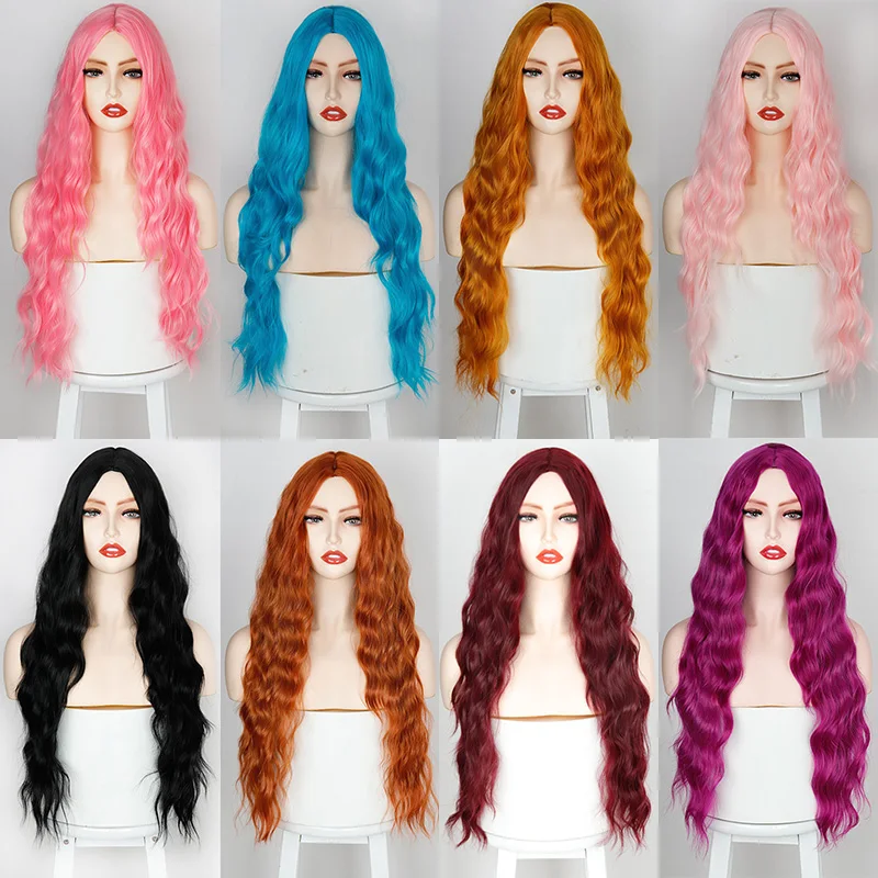 Синтетический парик чистый красный черный оранжевый парик длинные волнистые парики для косплея на Хэллоуин для женщин высокотемпературное волокно