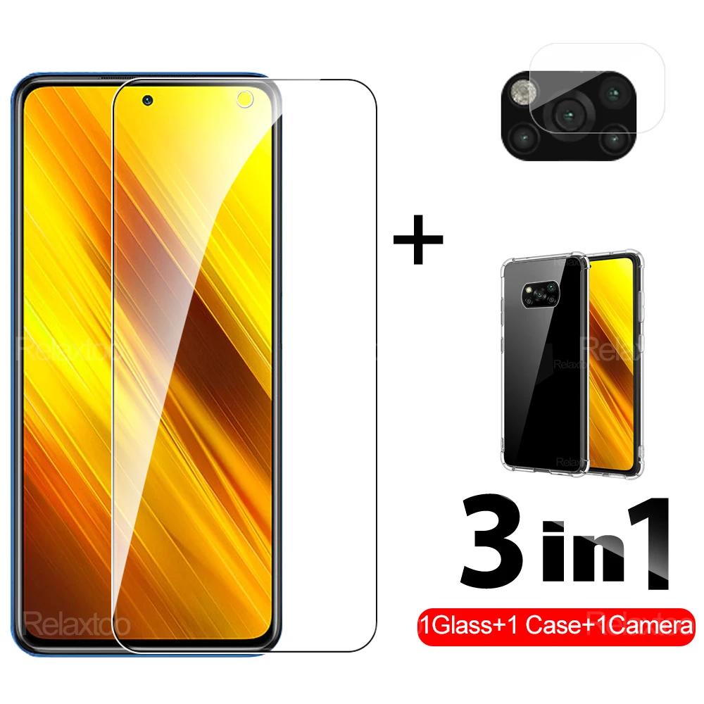 Чехол poco x 3 pro 3-в-1capa, стеклянный чехол для poco X3 pro nfc ...