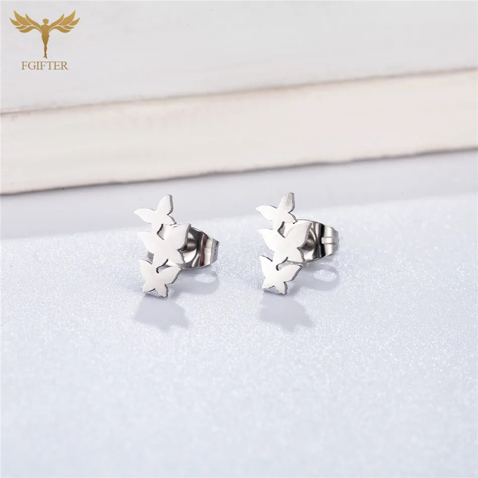 Серьги-гвоздики женские, из нержавеющей стали, в форме бабочки