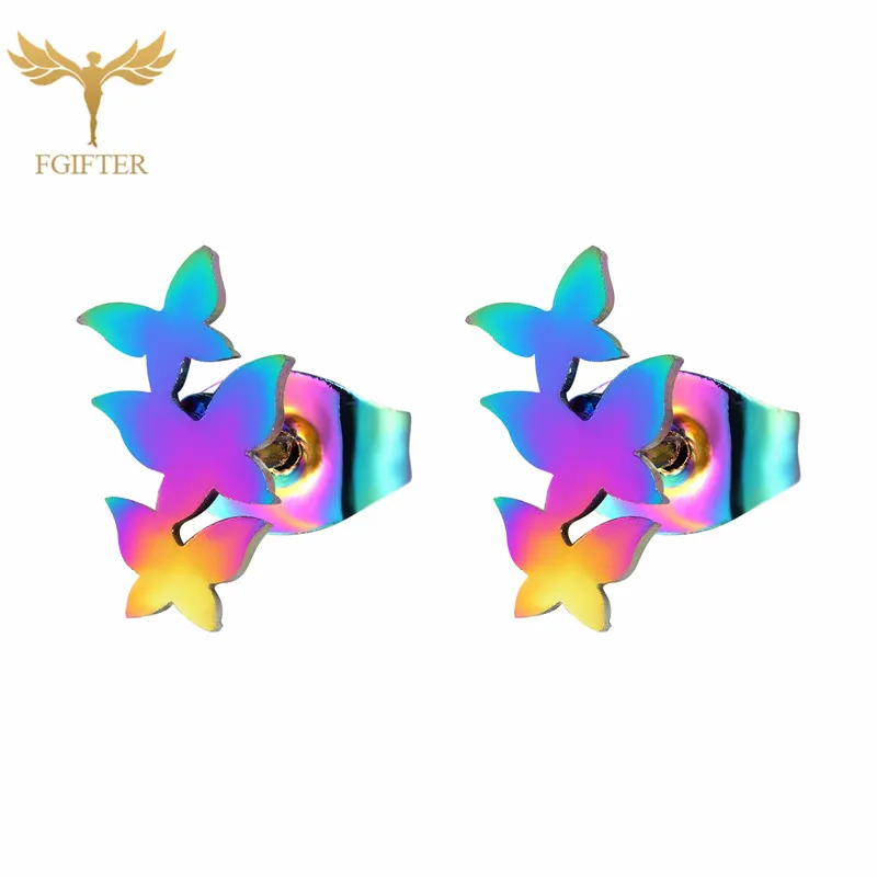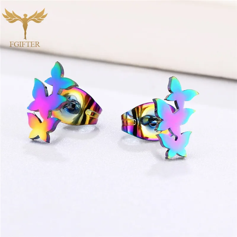 Необычные цветные серьги-гвоздики три бабочки Женские аксессуары из...