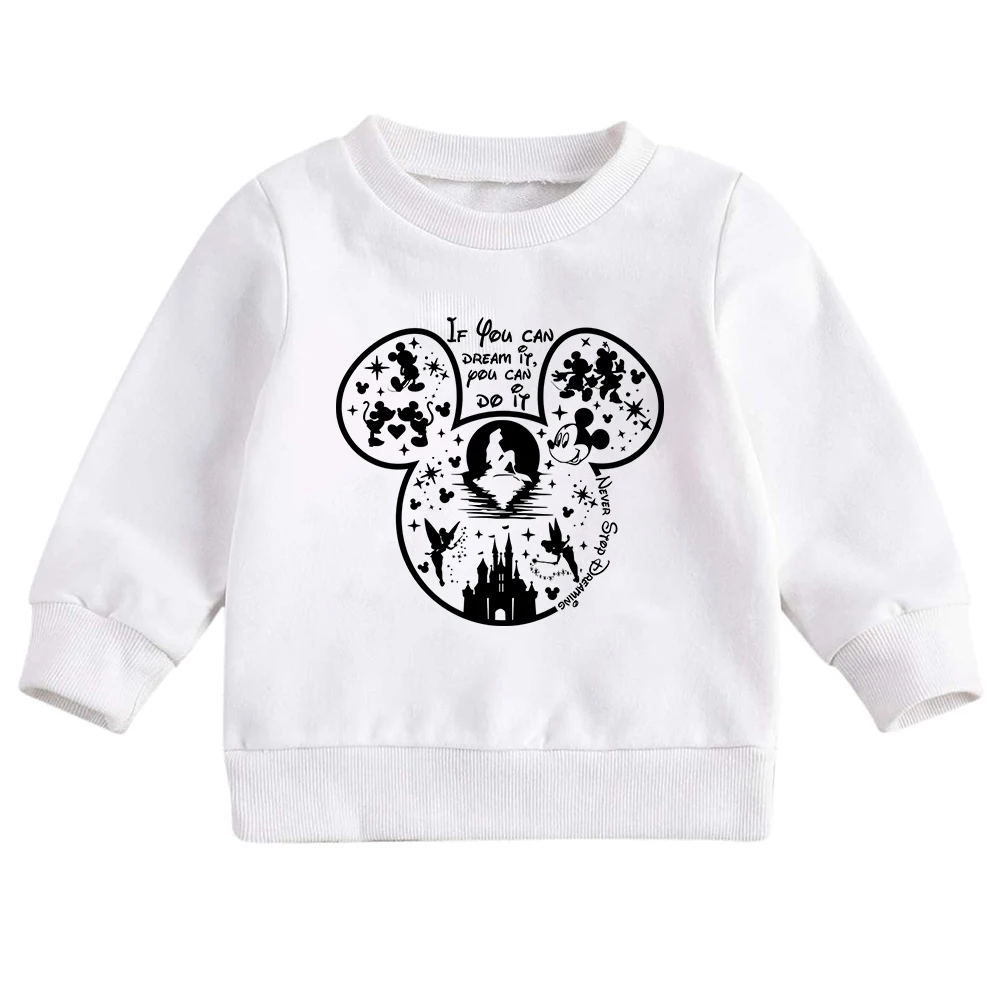 Белые толстовки Disney, модные уличные топы с принтом стежков, детс...