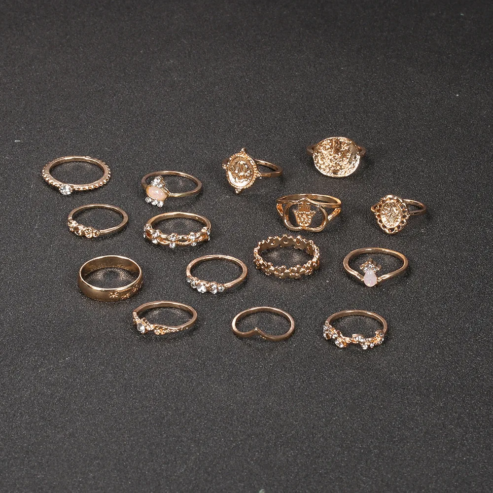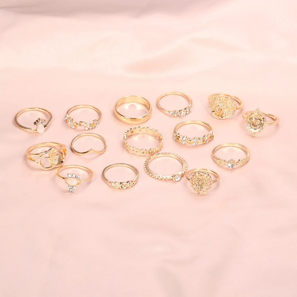 Набор колец и венков в богемном стиле, 15 шт.компл., золотистые украшения с изображением девы Марии в форме сердца, Женские Геометрические аксессуары с кристаллами, 2021