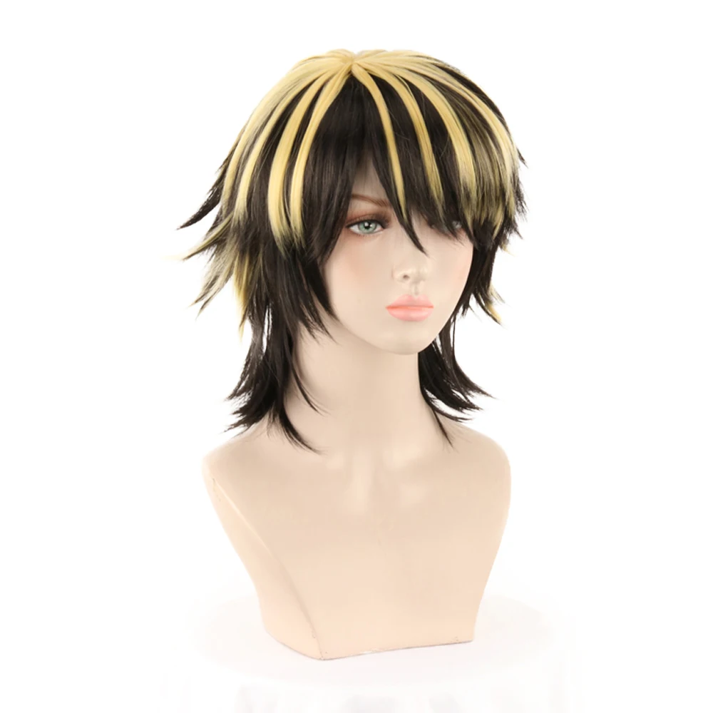 Парик для косплея ханемия казутора из аниме Токио, короткие черные и золотистые волосы с колпачком из Токио мандзи, с шапочкой
