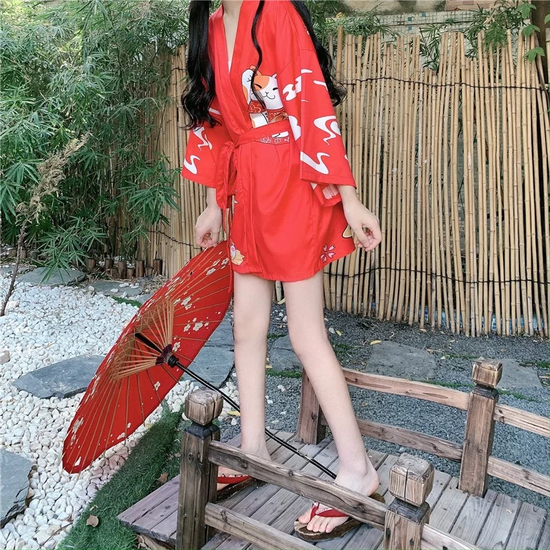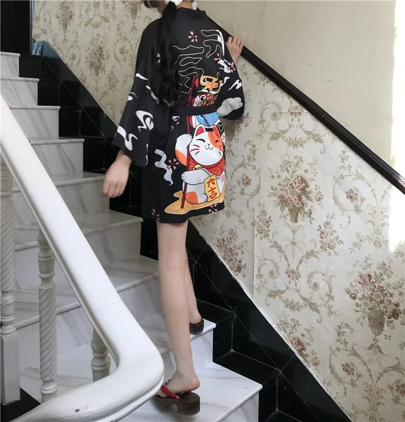 Женское кимоно в стиле аниме, летнее пляжное кимоно Lucky Cat, юкат...