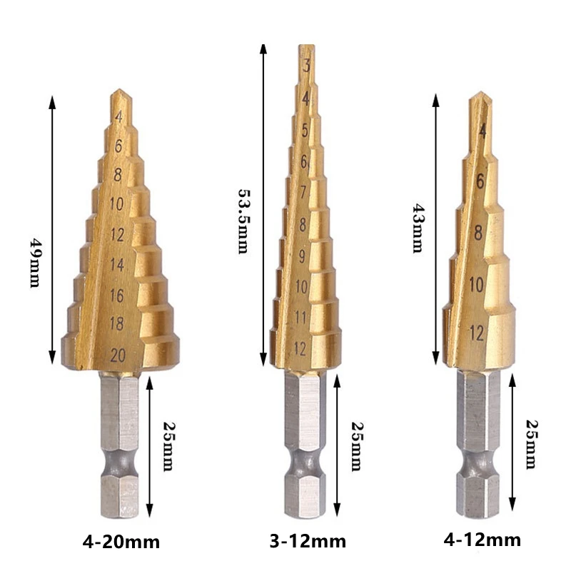 3-12 4-12 4-20 4-32 мм HSS ступенчатое сверло с прямой канавкой, титановое покрытие, дерево, металл, резак для отверстий, набор инструментов для сверления с конусом