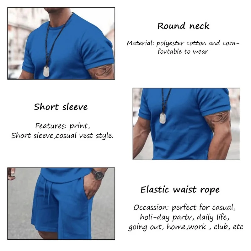 Особенности: мужской летний спортивный костюм, футболка с коротким рукавом, свободные штаны, однотонный комплект из двух предметов, одежда для отдыхаПримечание: При ручном измерении допускается погрешность в 1-3 смРазмер: M-5XLЦвет: красный, зеленый, синий, розовый, темно-серыйМатериал: смесь синтетического волокнаПосылка включает в себя: комплектИнструкции по уходу: рекомендуется ручная стирка