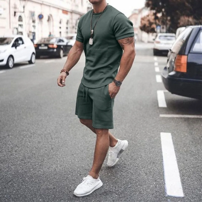 Костюм спортивный мужской летний из двух предметов, футболка с коротким рукавом, свободные штаны, однотонная одежда для отдыха