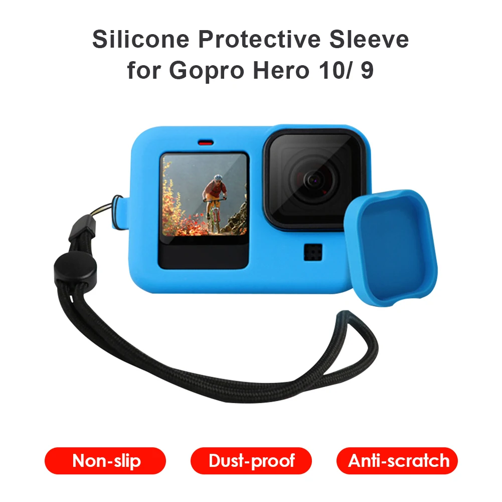 Мягкий силиконовый чехол для GoPro Hero 10 9, черный защитный чехол, чехол с ремешком для Go Pro Hero 9 10, аксессуары