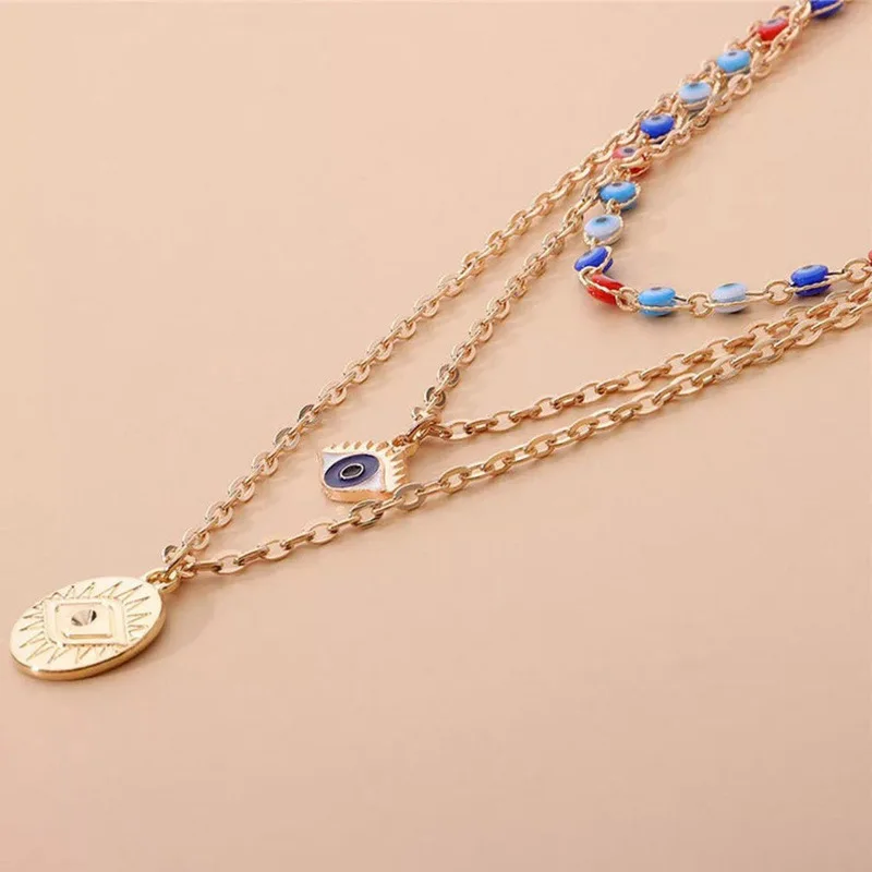 Модные Турецкий Дурной глаз многослойное ожерелье для женщин богемс...