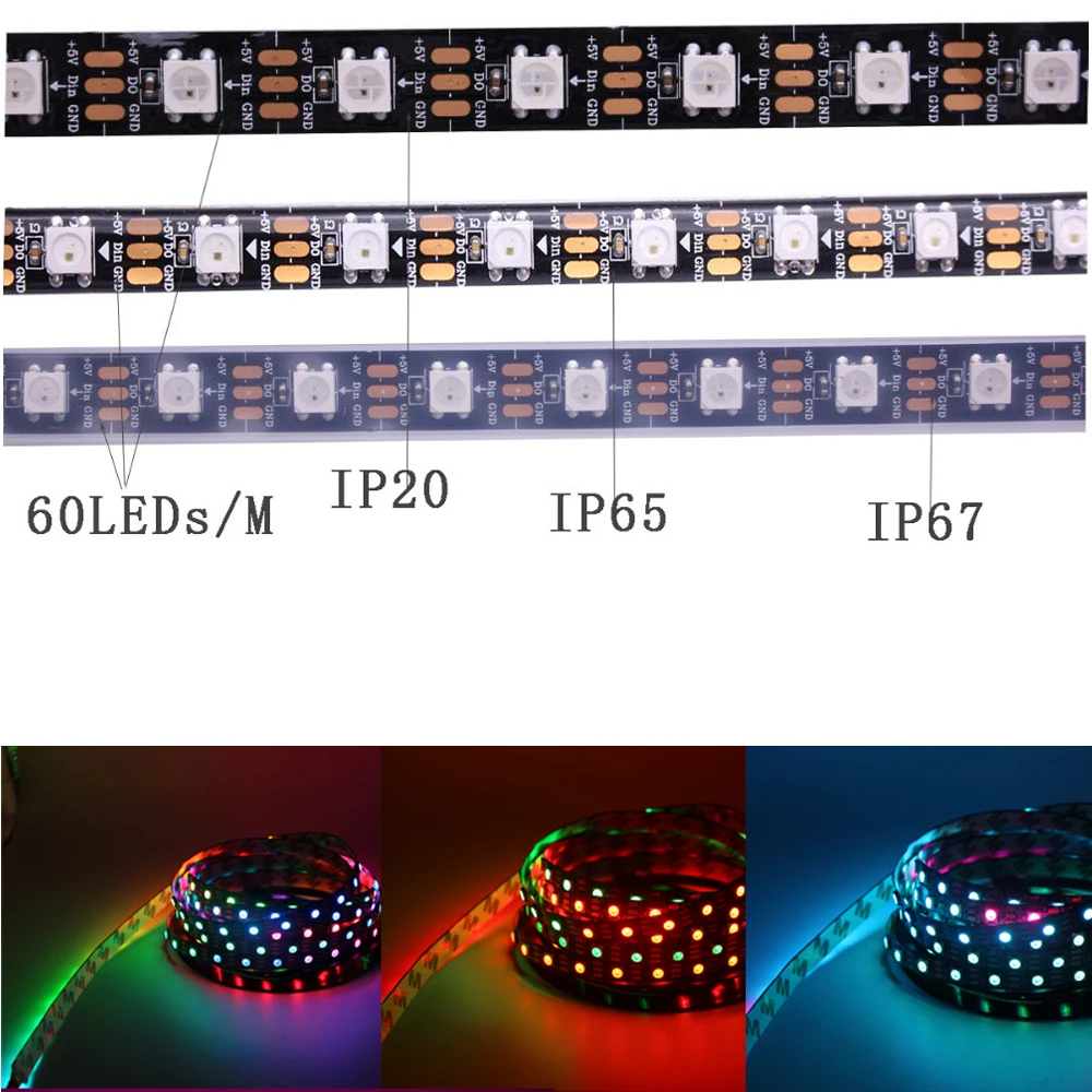 Обратите внимание:Если вы заказываете более 3 м. Пожалуйста, убедитесь, что мощность, которую вы использовали, составляет более 5 в 3 А1. Светодиодная лента с помощью контактной сварки 0,5 м, это совершенно нормально в электронного продукта, это не является проблемой качества. В том случае, если вы имеете что-то против, не Оформляйте заказ!2. WS2812B Светодиодные полосы можно вырезать купить каждый "один" светодиодный чип!3. IP30: не водонепроницаемыйIP65: водонепроницаемое силиконовое покрытие Дешифрование продукта:Входное напряжение. ....................... DC5VМощность. ....................... 30 светодиодов/м ---- 9 ватт/метрСветодиодный ресурс. ........................ WS2812B светодиодный (5050 SMD RGB светодиодный со встроенной улучшенной версией ws2811 ic)Светодиодный. ........................ Каждый светодиодный СветодиодныйТип ИС. ........................ Улучшенная версия ws2812 IC (встроенный 5050 smd rgb led)ИС. .......................(1 IC дисков 1 светодиодный чип)Пиксели. ....................... 30/метрШаг. ......................... 16,6 мм (1000/64)Серые весы. ....................... 256Биты/цвет. ....................... 8 бит/цветШирина FPC. ....................... 30 светодиодов/м ---- 10 ммЦвет FPC. ........................ Черный/белыйСтепень защиты. ......................... IP30/ IP65Цвета. ......................... Полноцветный RGB, изменение цвета мечтыМожно резать. ......................... Каждый светодиодныйПосылка. ............................... В антистатическую сумку, IP30 IP65 с 3 м липкой лентой на спине