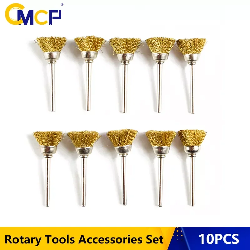 Абразивный инструмент CMCP с хвостовиком 3,0 мм, шлифовальная щетка, латунная проволочная щетка для вращающегося инструмента Dremel, инструмент для полировки металла