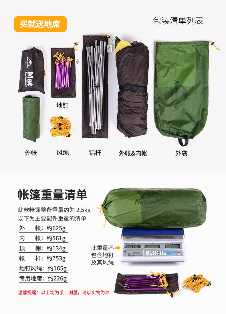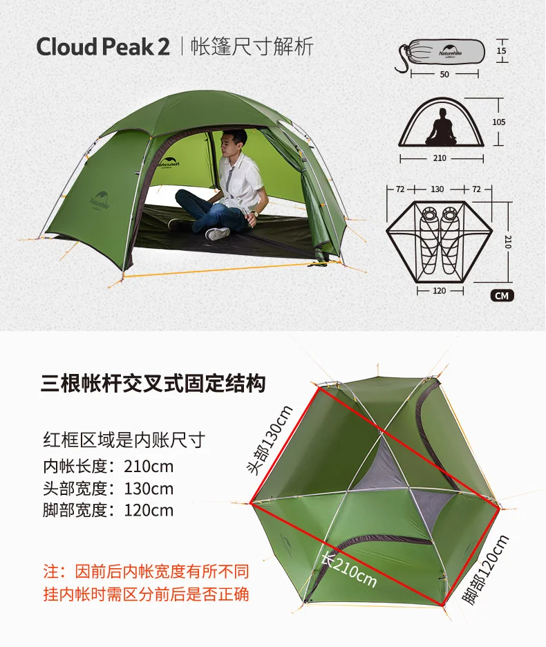 Палатка Naturehike Cloud Peak, Ультралегкая на 2 человек, для отдыха на открытом воздухе, походов