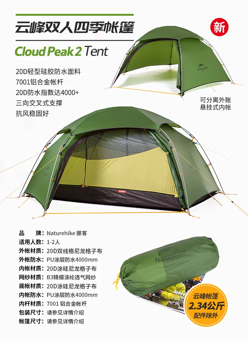 Палатка Naturehike Cloud Peak для двоих, Ультралегкая Всесезонная н...