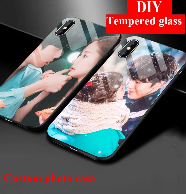 Feature 2DIY Picture Customized Tempered glass Phone Case Cell Phone Cover
