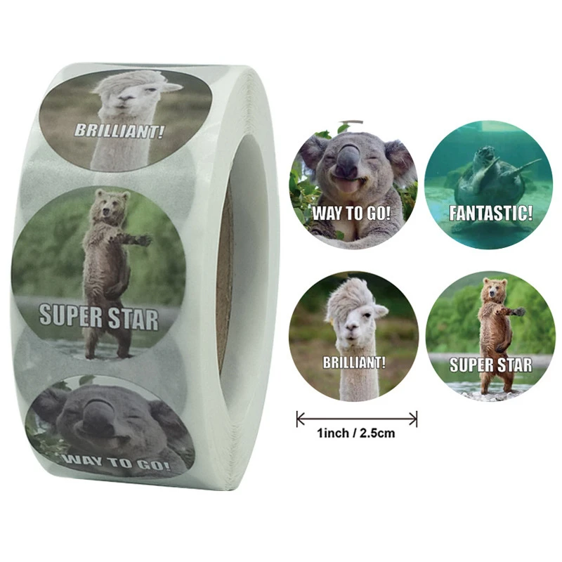 Животные награда Стикеры для детей 500 шт.рулон 1 дюйм мультфильм С...
