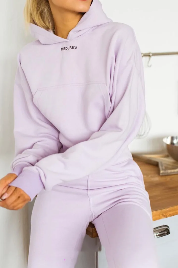 Спортивный костюм женский из 2 предметов, однотонный свитшот с капю...