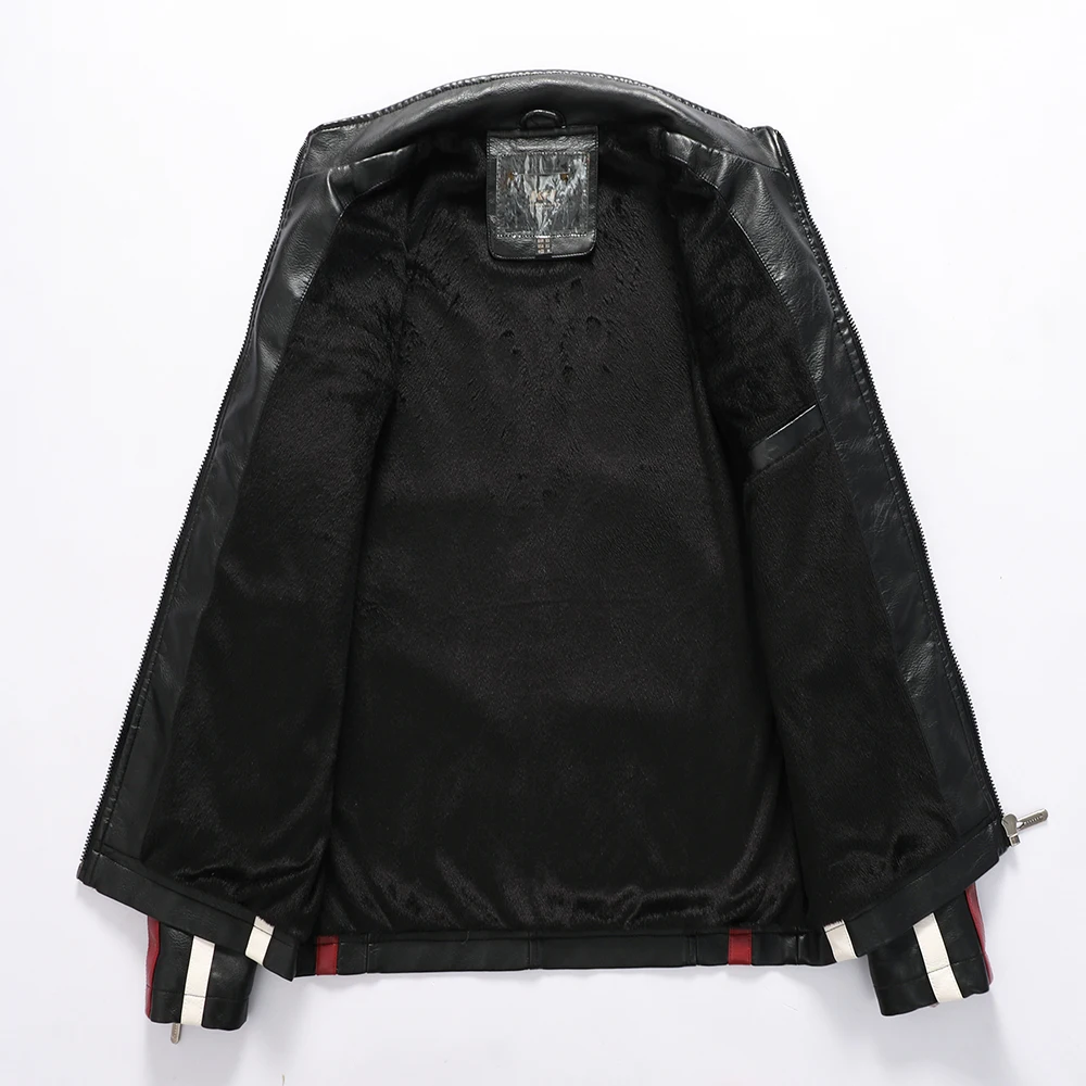 Модная кожаная мужская куртка в полоску, новинка зимы 2020, бархатн...