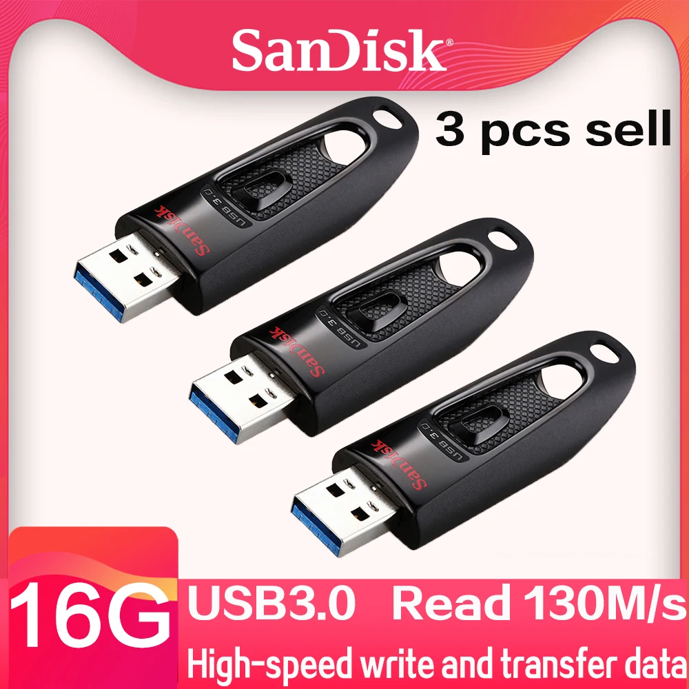 SanDisk 3 шт., продажа, CZ48 флеш-накопитель USB 3,0 16 ГБ 32 ГБ 64 ГБ 128 ГБ 256 ГБ 512 ГБ для ПК, ноутбука, телевизора, Воспроизведение HD, чтение до 130