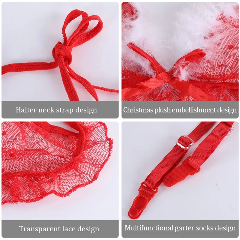 Рождественское женское нижнее белье, сексуальное кружевное чувствен...