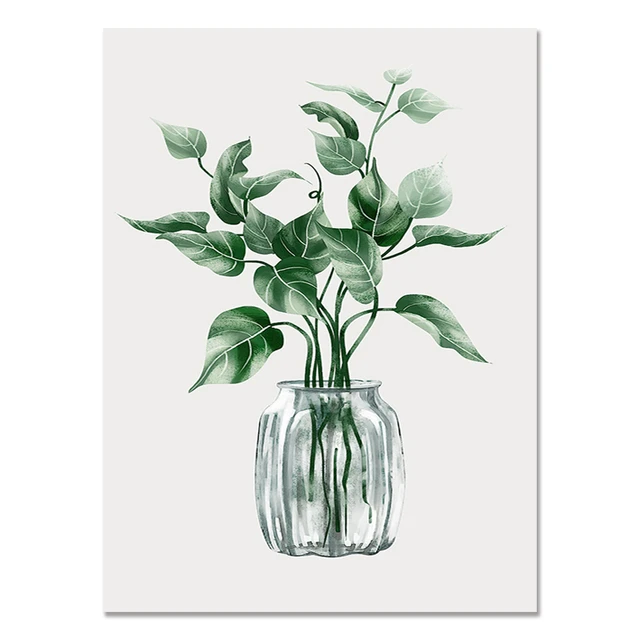 Минималистичный постер на стеклянную бутылку с зелеными растениями, настенные художественные картины, холст с тропическими листьями, картина для гостиной, украшение для дома