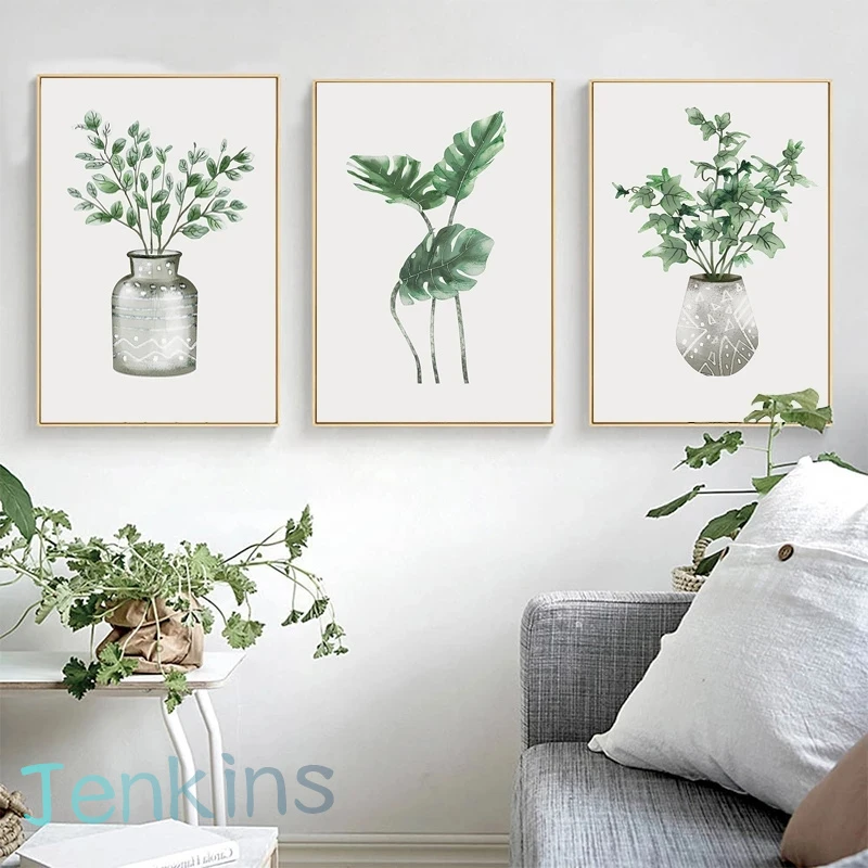 Настенные картины в простом стиле с зелеными растениями, декоративн...