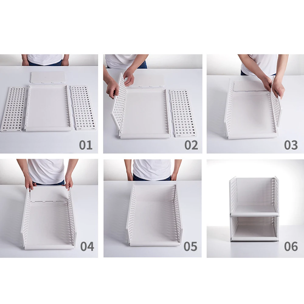 2. [Штабелируемый]: набор из 4 или 2 полок для хранения гардероба может быть сложен, чтобы сделать семейное пространство упорядоченным и максимально использовать вертикальное пространство. Вы можете свободно складывать многослойные пакеты для хранения и сортировки в соответствии с вашими потребностями. Размеры в разложенном виде: Размер S: 42,5x33x18 см (Длина x Ширина x высота), размер L: 42,5x33x25 см (Длина x Ширина x высота).