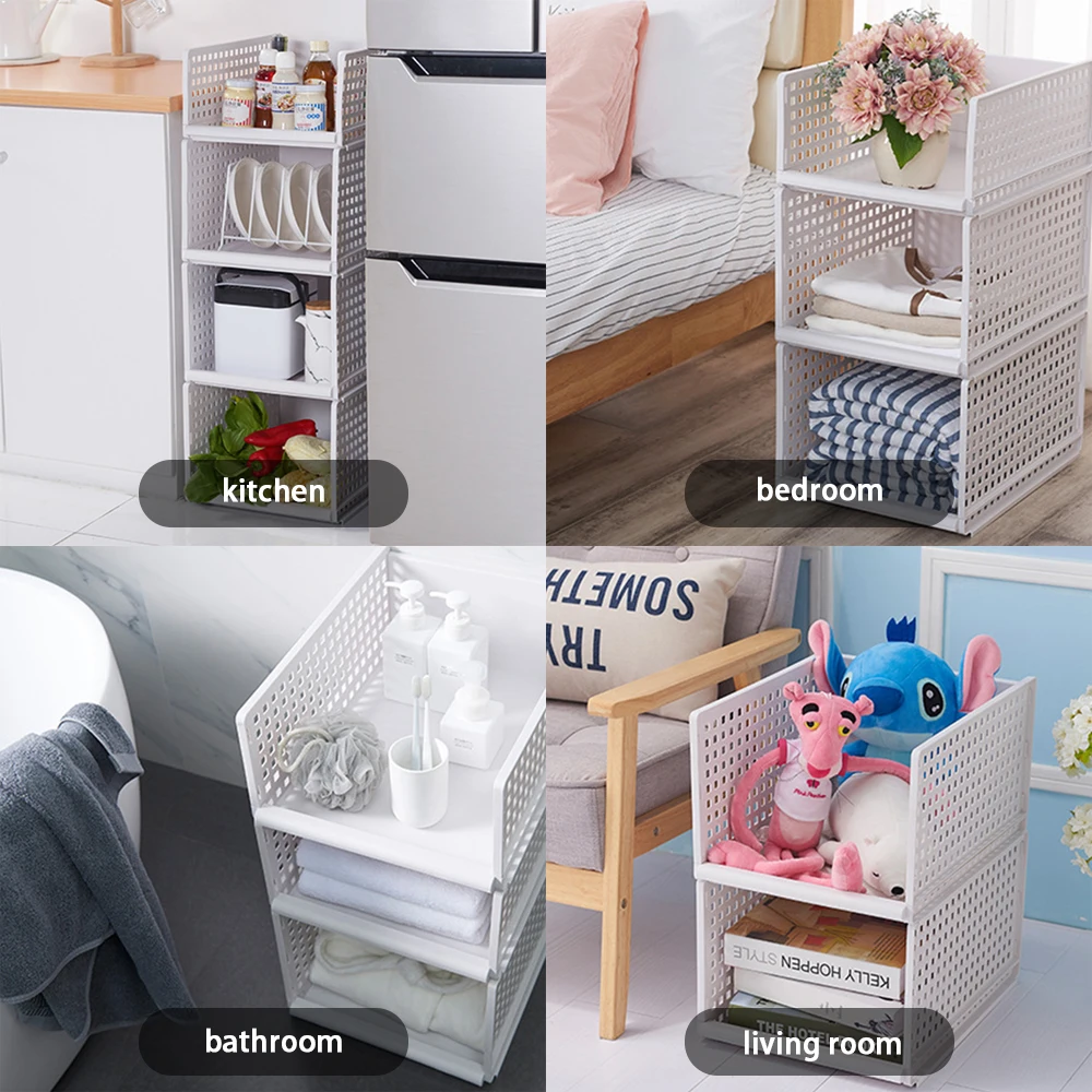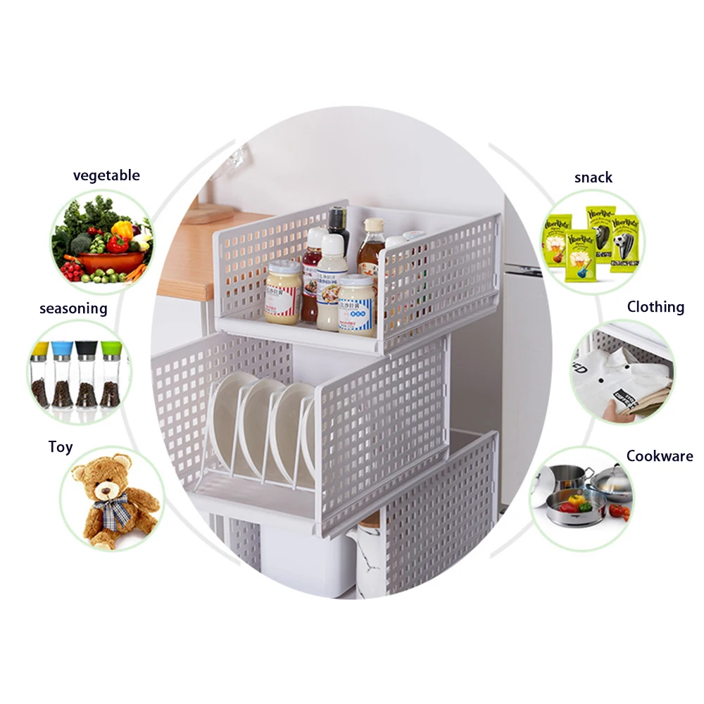 Штабелируемая раздвижная корзина для хранения одежды для гардероба, Женская кухня, полки для мелочей
