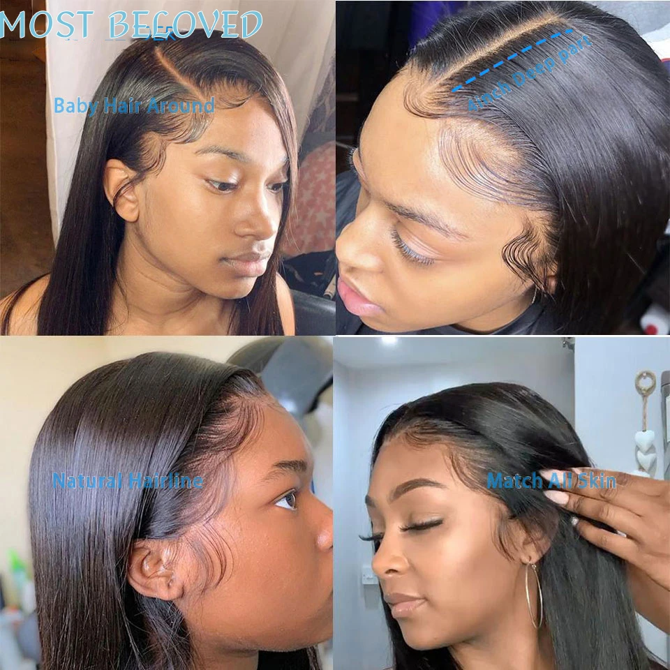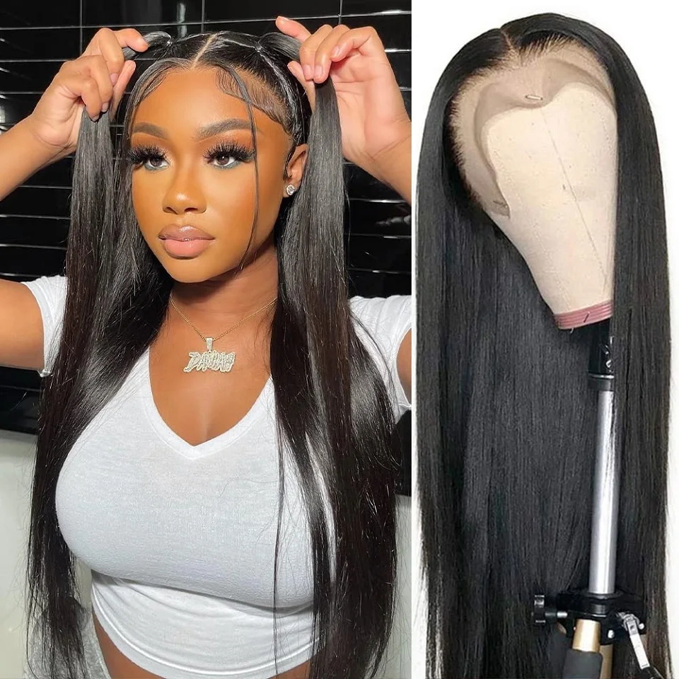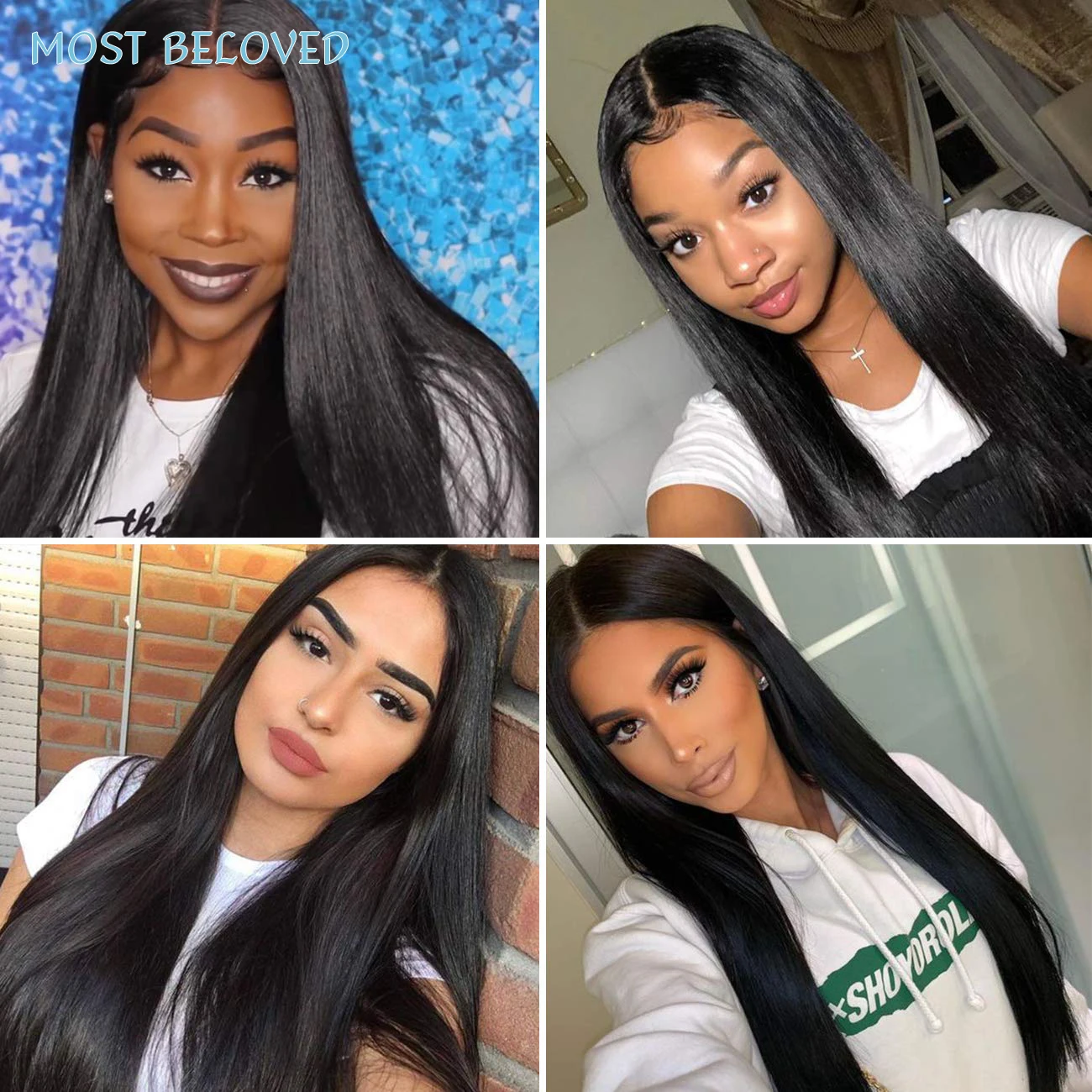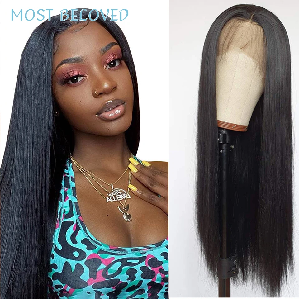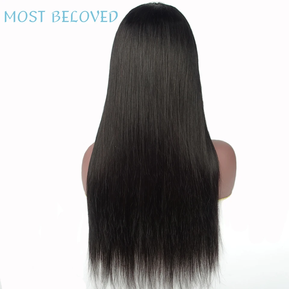 Парик из натуральных черных человеческих волос, 13 х4 дюймов
