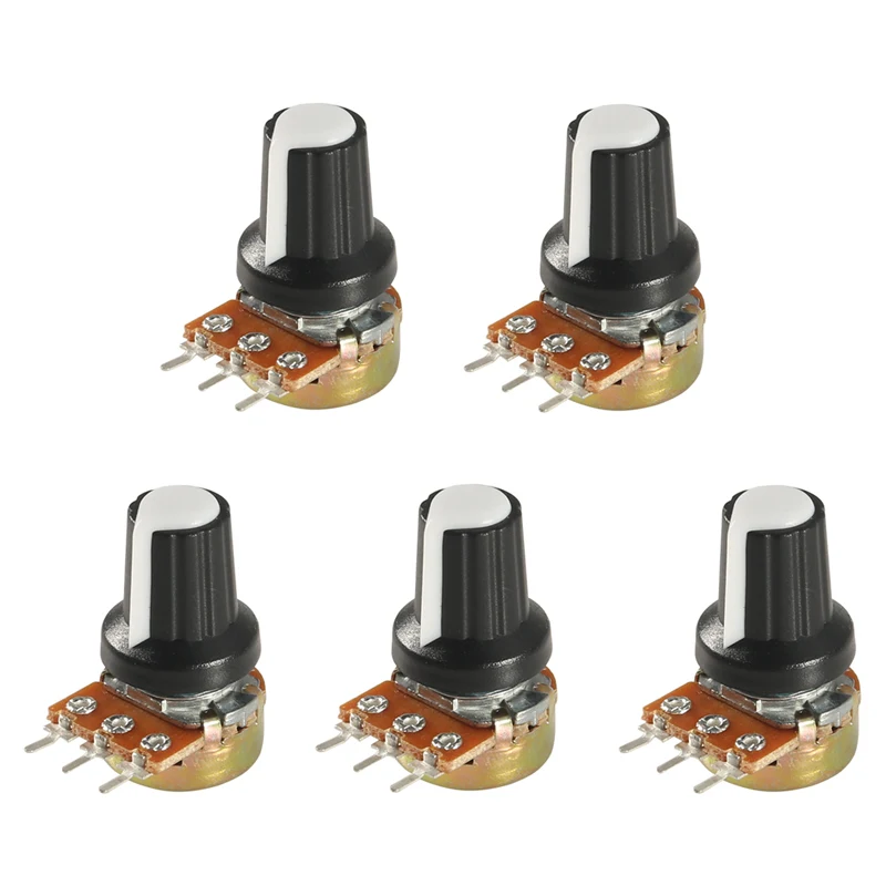 5 шт.лот WH148 1K 10K 20K 50K 100K 500K Ом 15 мм 3-контактный линейный конический роторный потенциометр резистор для Arduino с белой крышкой AG2