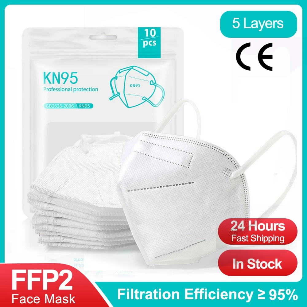 5-100 шт. KN95 белая маска ffp2mask для взрослых 5 слоев FPP2 одобренная Kn95Mask респиратор защитный FFP2 Mascarillas CE FFP3