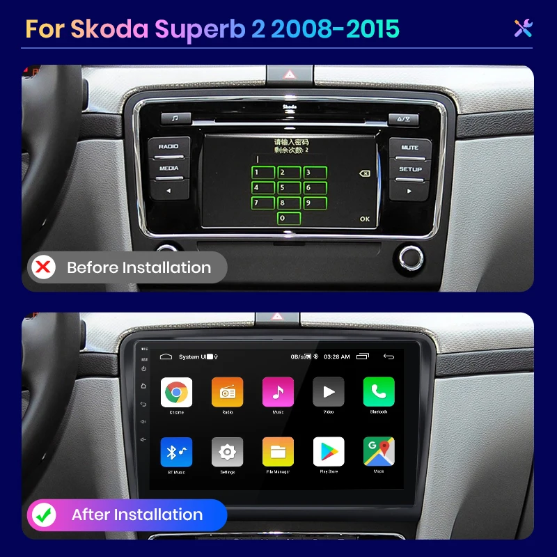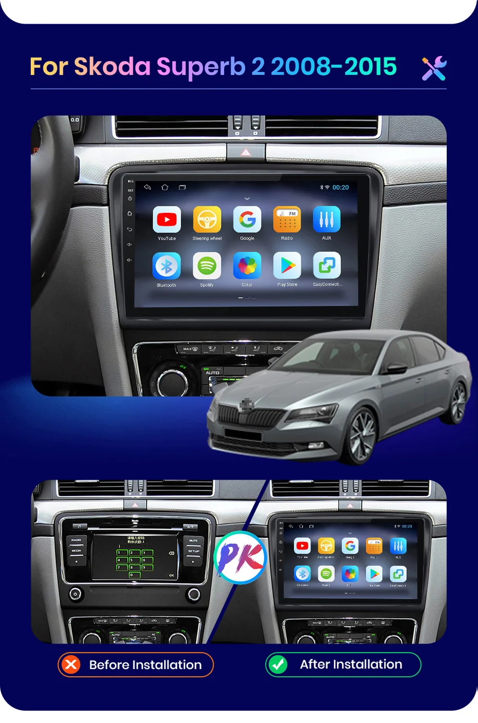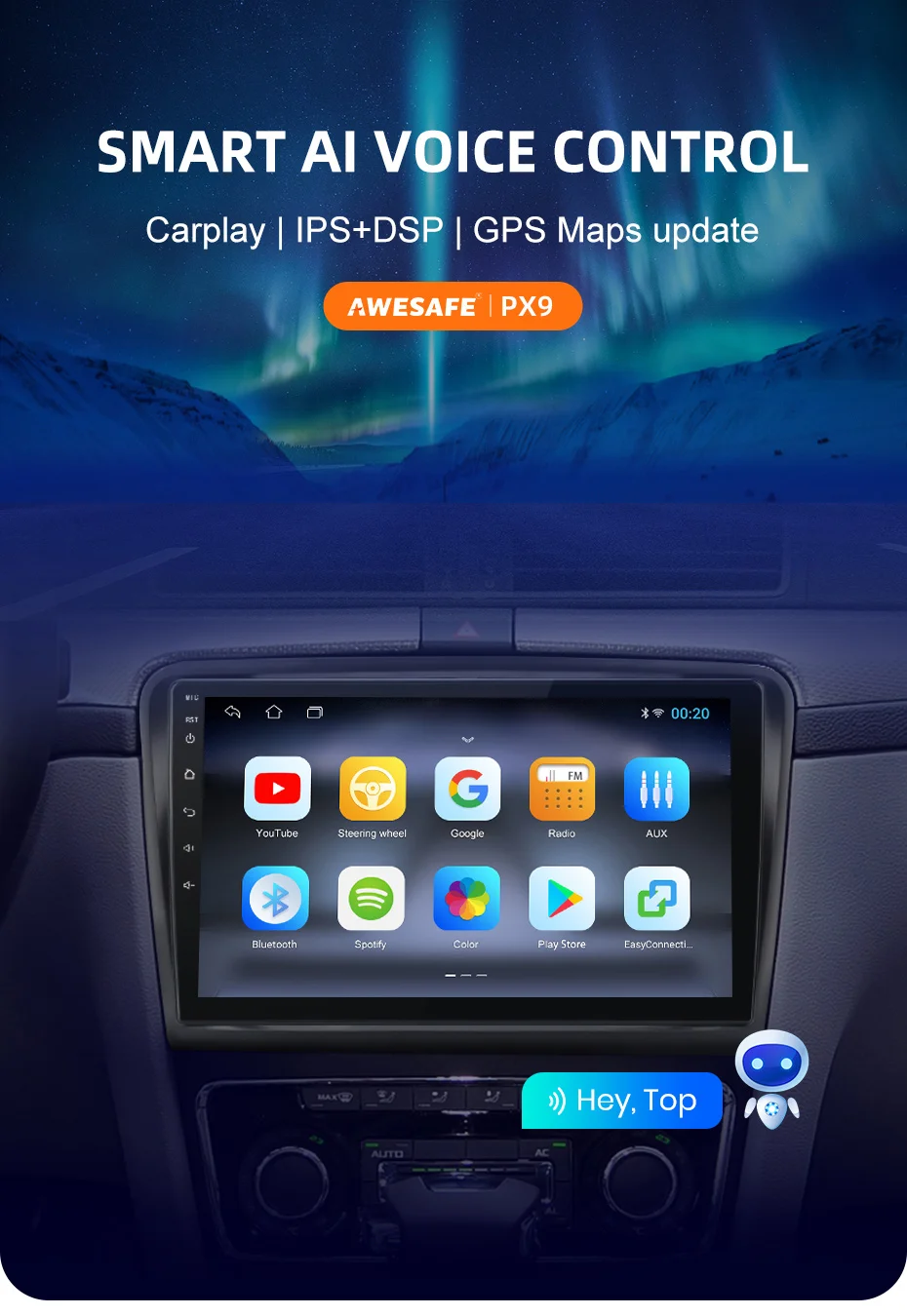 Автомагнитола AWESAFE PX9 для Skoda Superb 2 2008-2015, мультимедийный видеоплеер на Android 10,0, 2 Гб ОЗУ, 32 Гб ПЗУ, с GPS, типоразмер 2 din