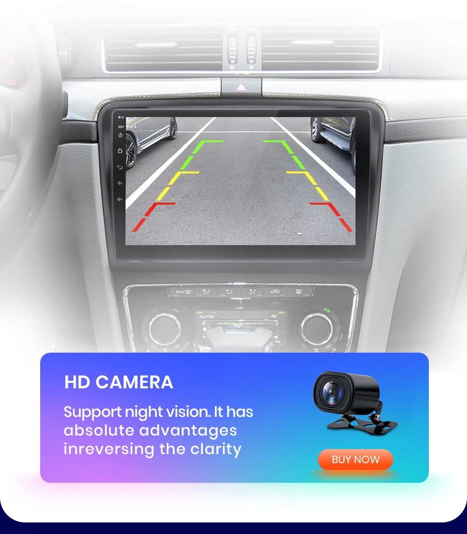 Когда автомобиль переключается на обратную передачу, экран автоматически переключается на задний вид с помощью парковочных линий, помогает вам изменить или припарковать автомобиль.(Задняя камера на изображении ниже является необязательной, и она лучше, чем обычная.)