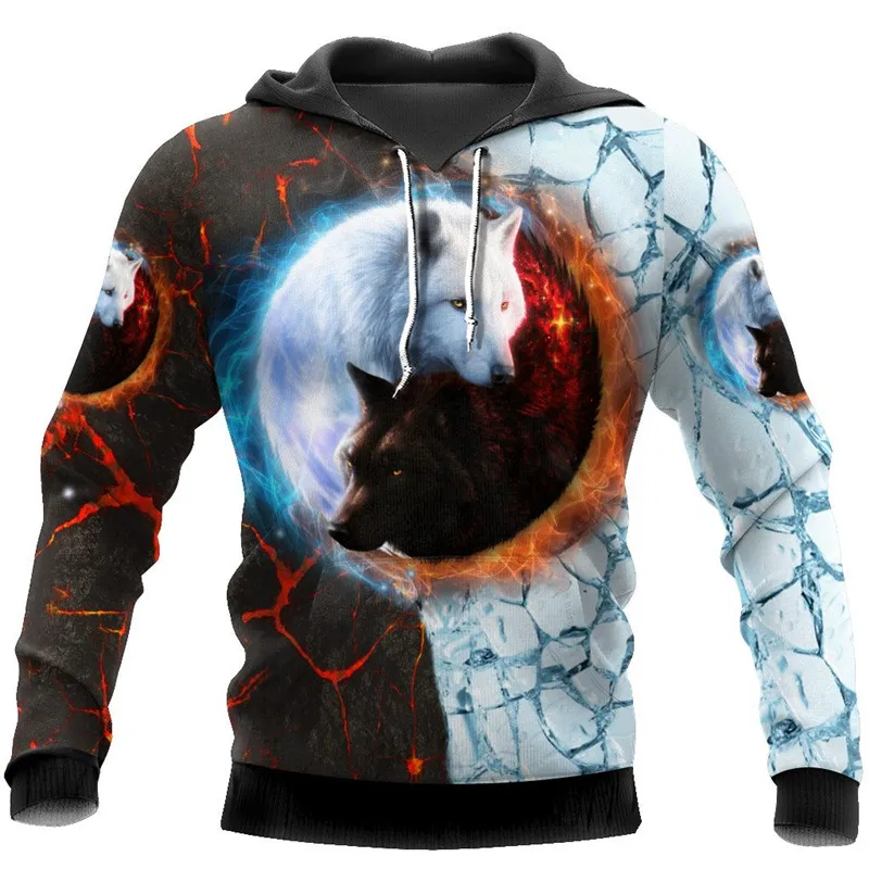 Мужские толстовки с капюшоном и 3D-принтом Yin Yang Wolf, Модный св...