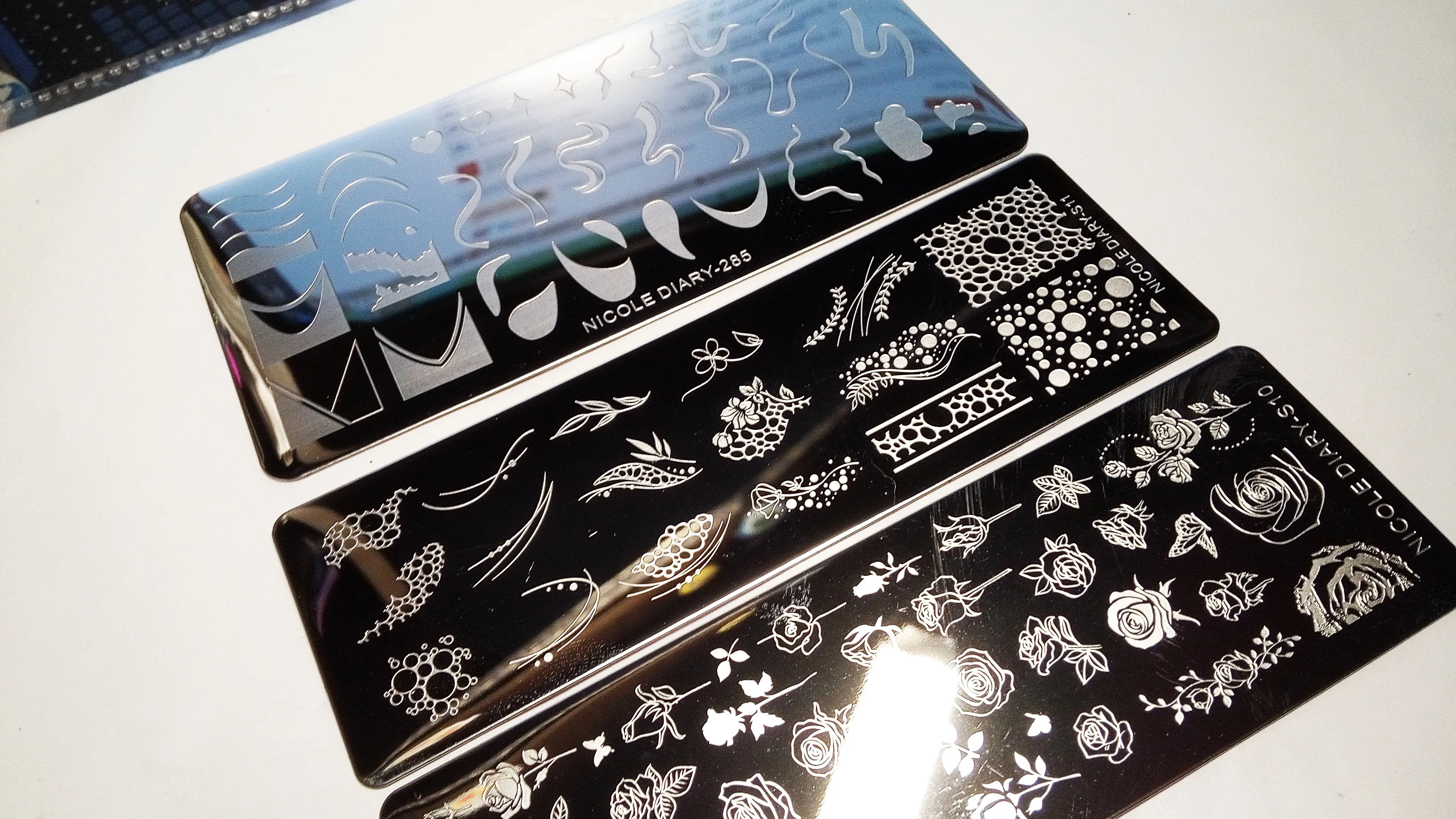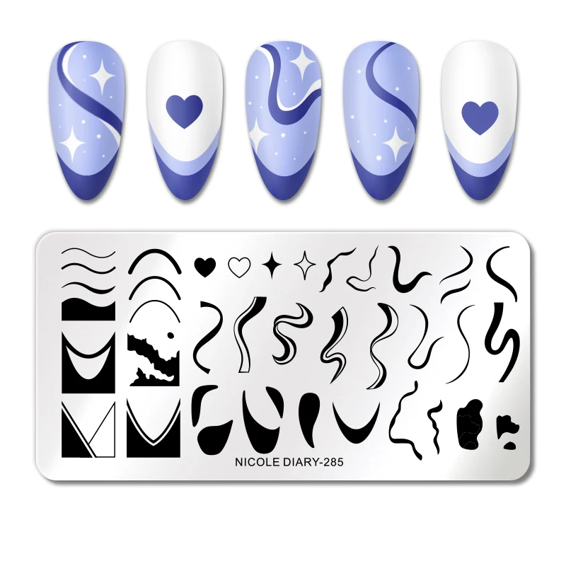 Трафареты NICOLE DIARY для дизайна ногтей, штамповочные пластины с французским сердцем и звездами, полосатые линии, трафареты для ногтей, цветок, лист, лаванда