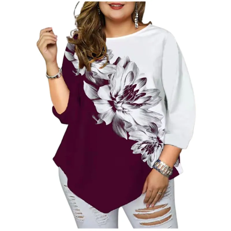 Женские футболки большого размера 5XL, свободные Осенние футболки Sprint с цветочным принтом, топы, уличная одежда, повседневная женская футболка неправильной формы, модель