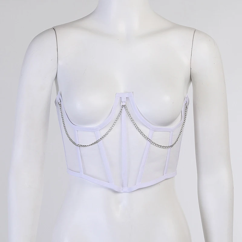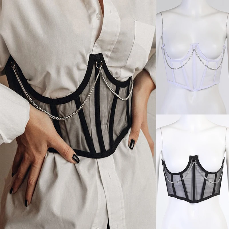 Женский корсет на талию, соблазнительная сетчатая корректирующая одежда с цепочкой для отдыха, Утягивающее нижнее белье, регулируемые бретельки, декоративные бретельки