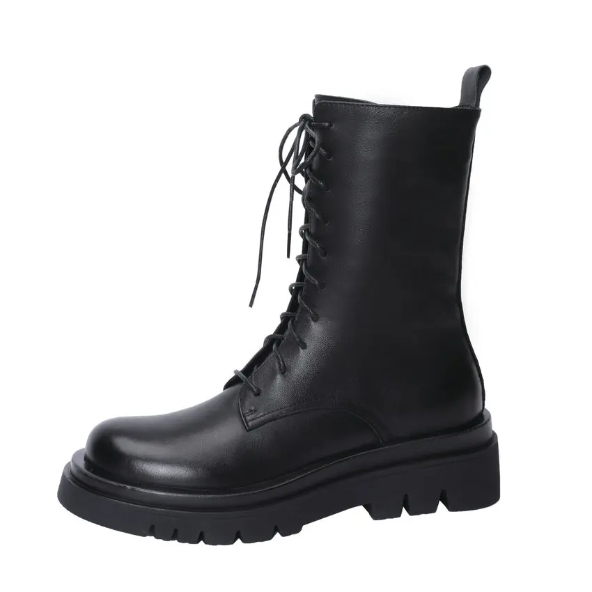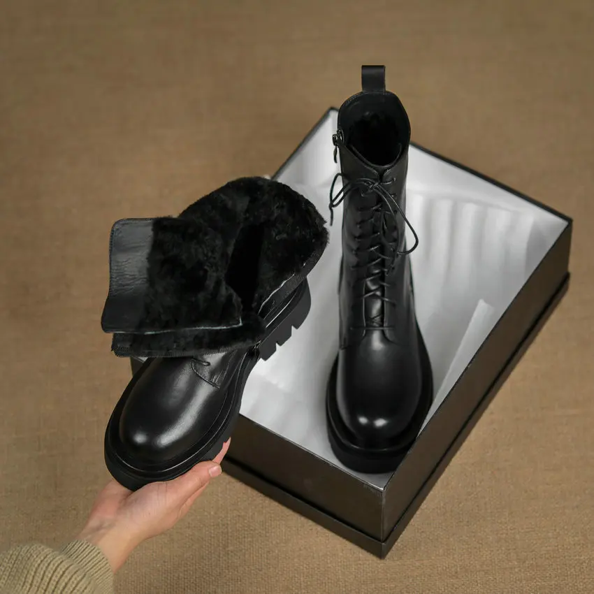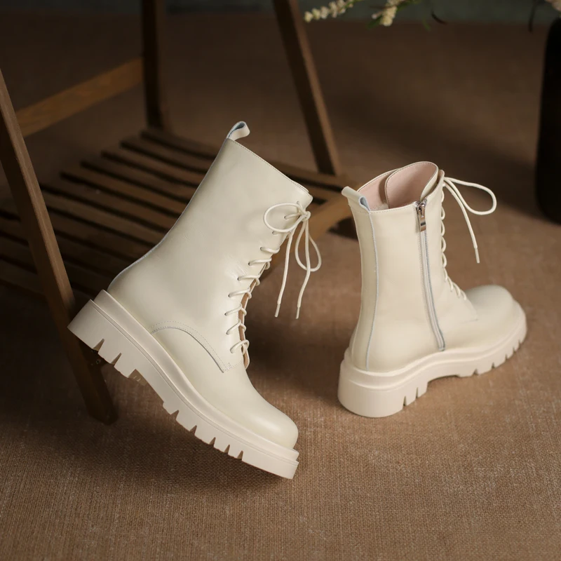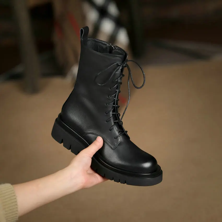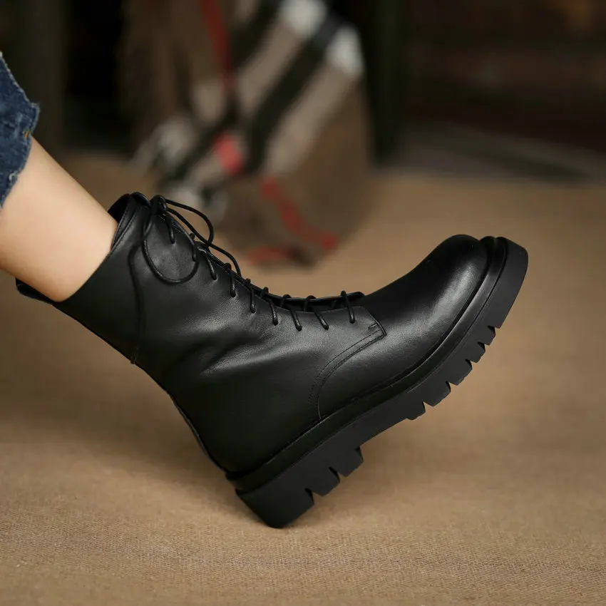 QUTAA2022 женские ботильоны зимние полусапожки из натуральной кожи на среднем квадратном каблуке Женская обувь на молнии со шнуровкой размеры 34-42