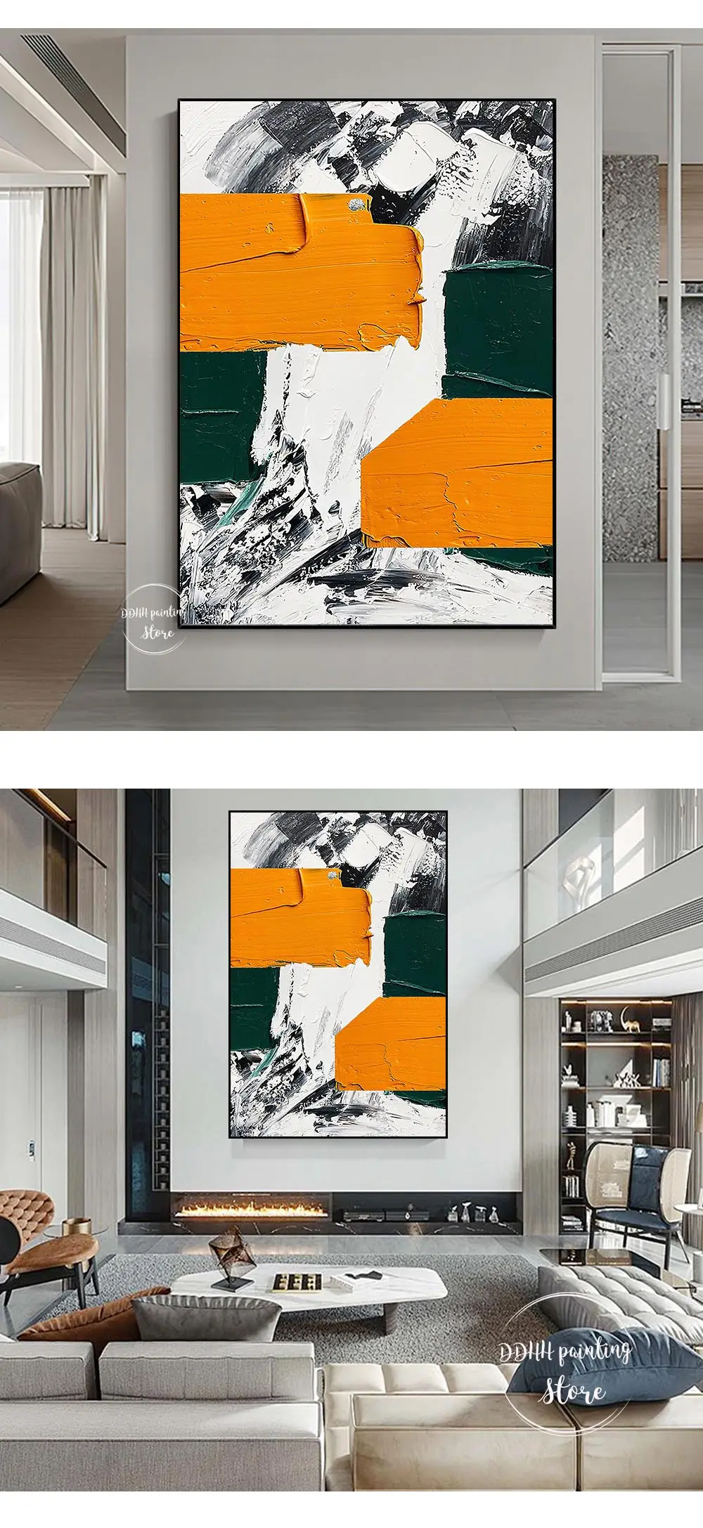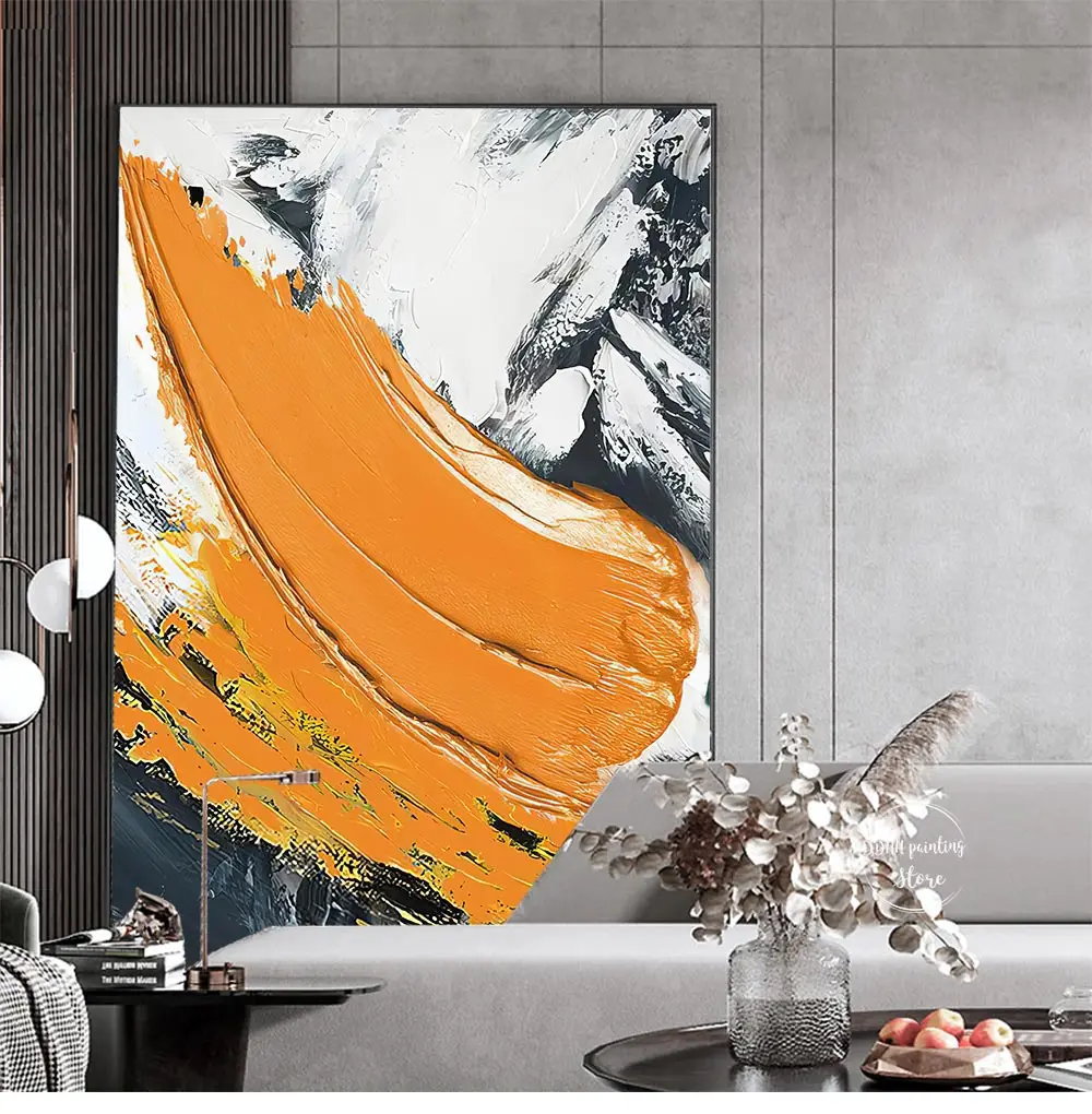 плакаты на стену украшения картина на стену украшения Ручная роспись маслом, холст, живопись, цвет черный, белый, оранжевый, современная абстрактная Настенная картина для крыльца, декор для гостиной, картина