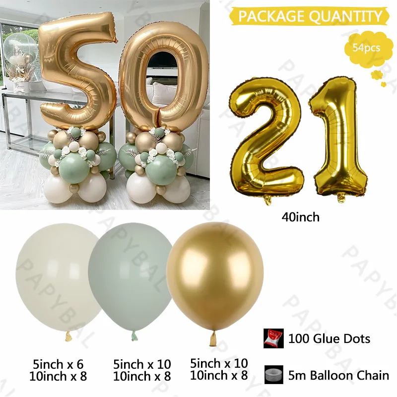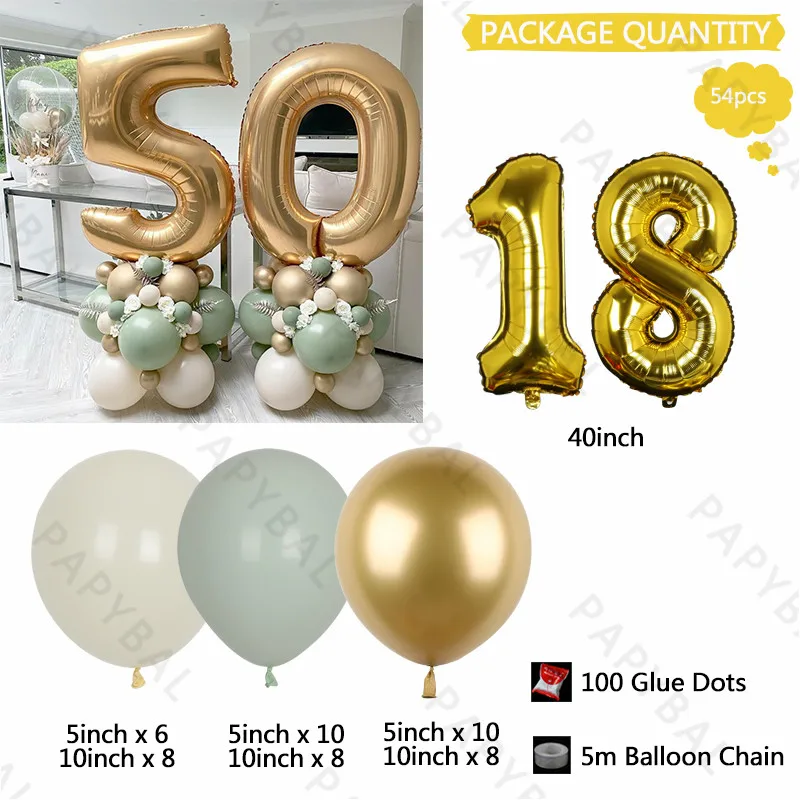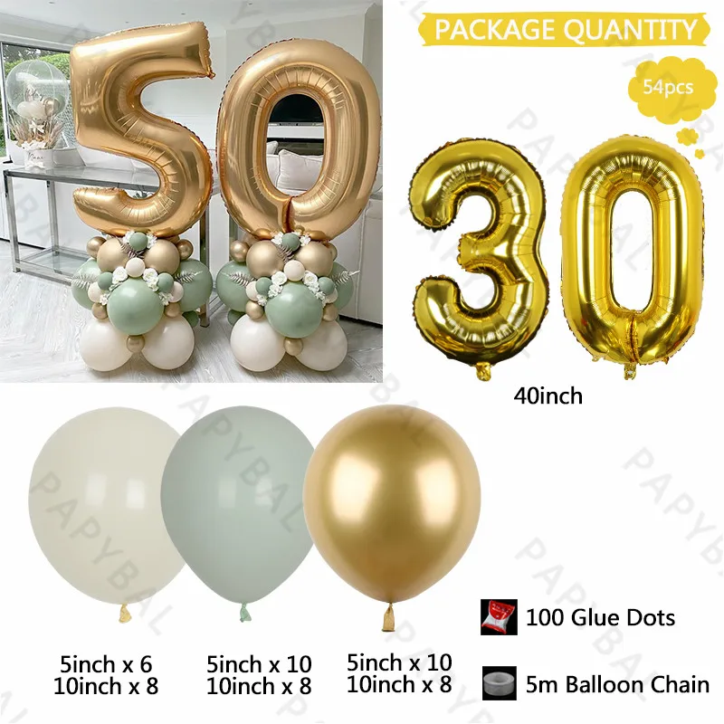 54 шт хромовые золотые шары набор 32 дюймов цифры алюминиевая фольга шарики для взрослых день рождения Globos 20 30 40 50th День рождения украшения