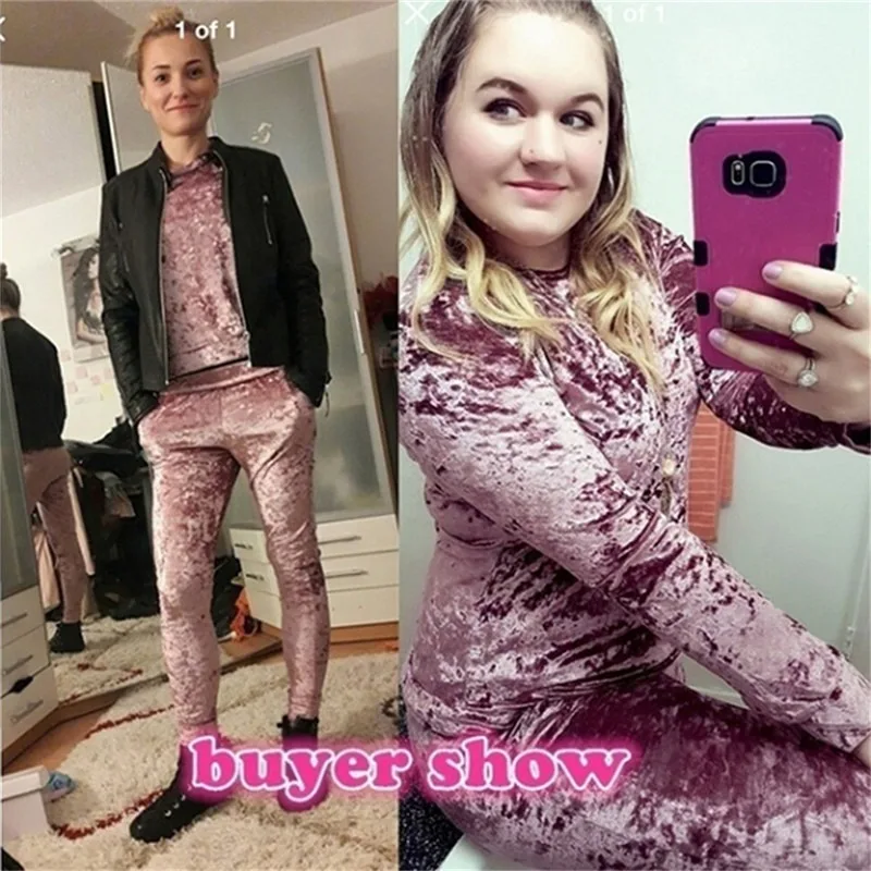 2021; Сезон осень-зима; Модные женские спортивный костюм бархатная ...