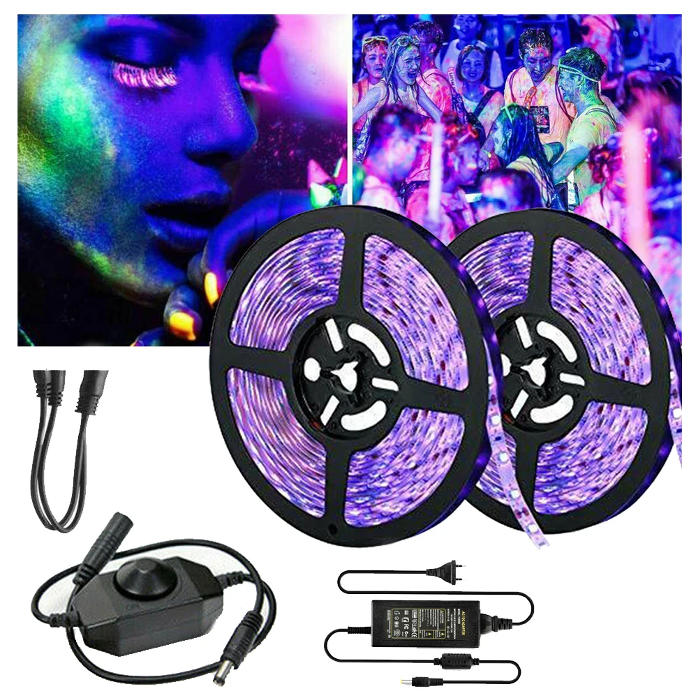 395-405 нм УФ светодиодная лента светильник в переключатель питания диммер ультрафиолетовая гибкая лента комплект ламп для покраски тела флуоресцентная Вечеринка сделай сам