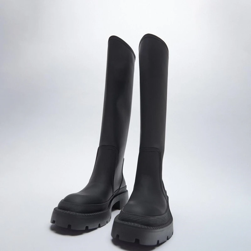 Женские высокие сапоги до колена из искусственной кожи на низком каблуке Женская осенне-зимняя обувь на платформе без застежки размера плюс 43