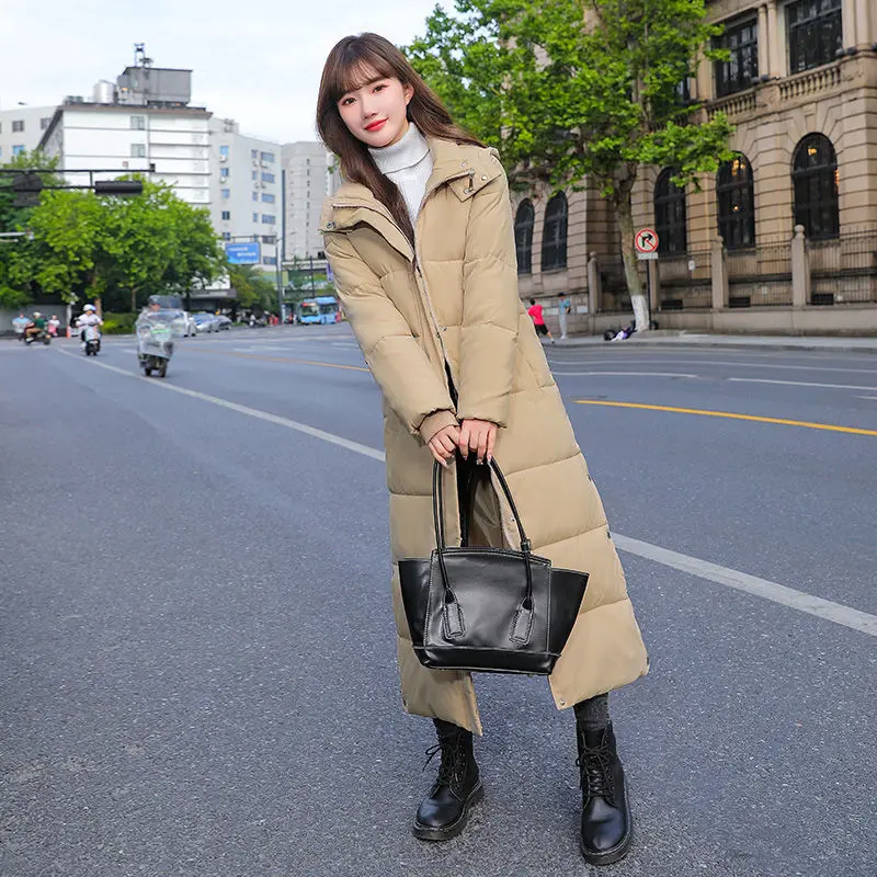 Пуховик женский длинный зимний свободного покроя из хлопка, в европейском и американском стиле
