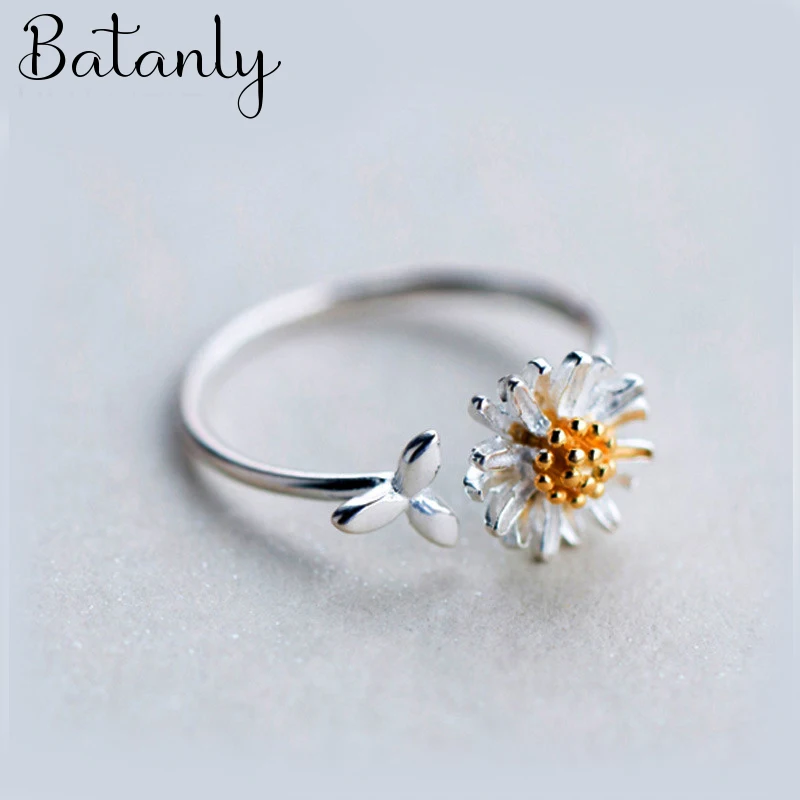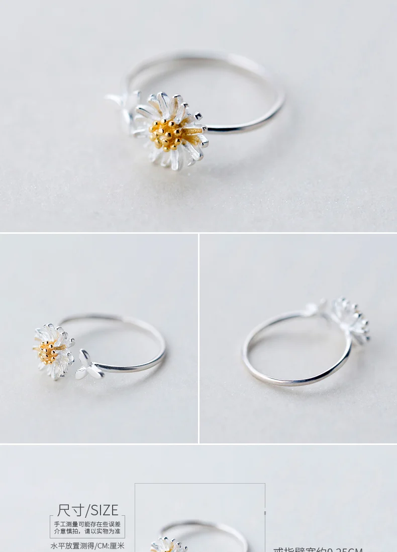 Женские кольца с цветком маргаритки, серебристого цвета, регулируем...