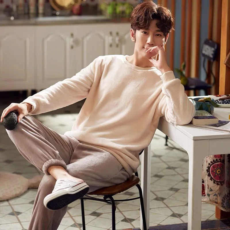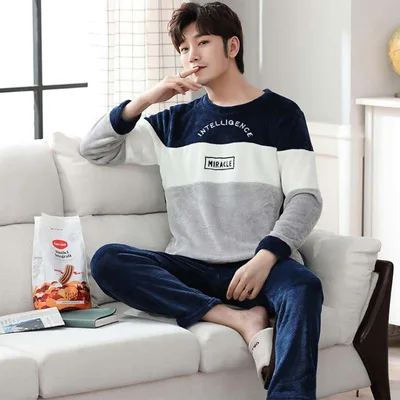 Зима 2021, толстые теплые фланелевые пижамные комплекты с длинным рукавом для мужчин, одежда для сна из кораллового бархата, домашняя одежда для гостиной, домашняя одежда