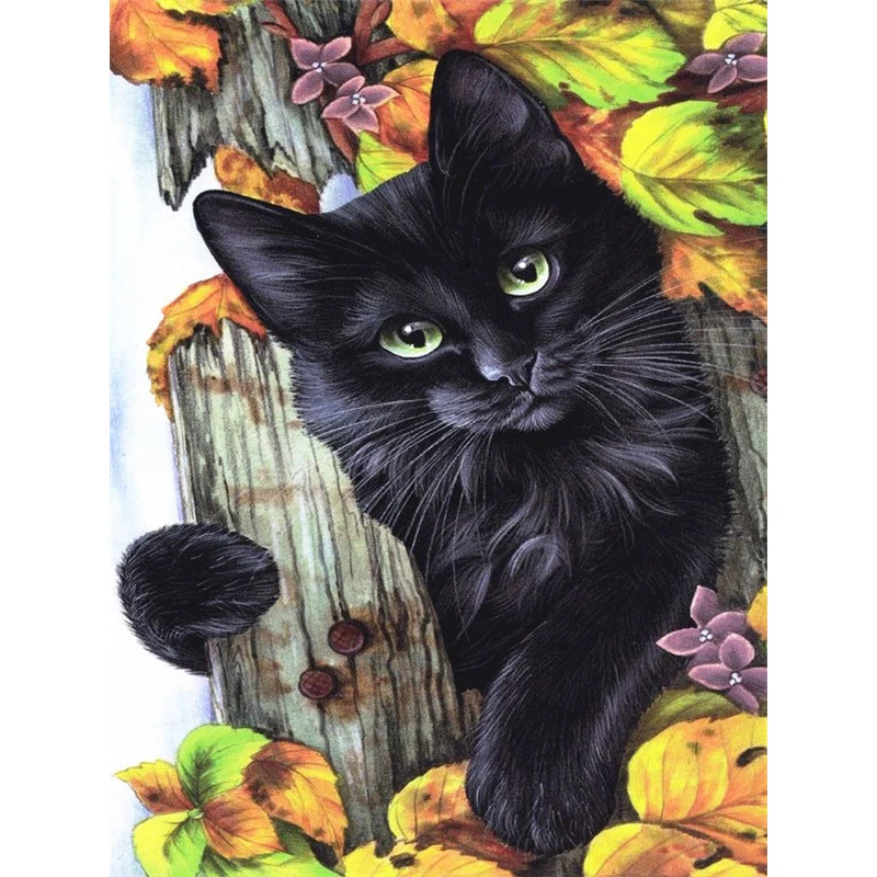 Алмазная живопись 5D сделай сам, вышивка крестиком с изображением животных, черная кошка, цветок, полноразмерная вышивка, квадратный круглый штифт, ручное украшение для дома, подарок